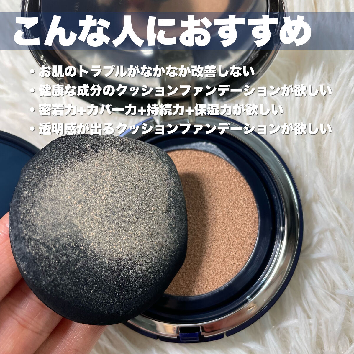 高濃度ヒノキ水を配合したクッションファンデ✨ ベタグルカンも配合されていて保湿力に優れていて免疫力強化や皮膚再生や保護など美容液みたいな成分が使われてるの🥺✨ SPF50+PA+++で紫外線対策も🙆♀️✨ オークルカラーで多分21号くらいの標準カラーで使いやすい✨ カバー力‼️‼️‼️‼️とっても綺麗🥺 しかもピタッって密着してくれる😍 程よいツヤ感もあってセミマットかな♥️ スムースパフ 柔らかいもちもちした肌触り✨ テンションパフ もちっとした弾力のある肌触り✨ パフにもこだわってるの凄い🥹✨ 沢山ついてて衛生的にもいいよね♡ このクッションファンデ凄い🥹