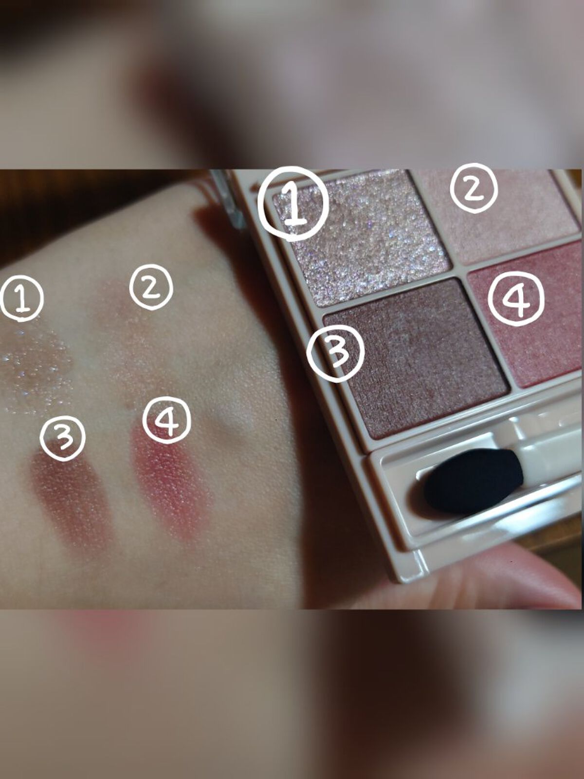 もう色味がどストライク!! 粉質もしっとりしてて、密着してくれる◎ 廃盤になると知り、購入したのですが 早く買えばよかったと後悔しました... 粉質はしっとりで、ひと塗りで発色も良く、色味が絶妙なバランス。 単色使用したり、ラメなしの3色使用して控えめな感じにしてもいいし、ラメありで華やかにしても素敵でした。 シルキールースモイストパウダーの01は持っていて、これが凄く良かったので楽しみにしてました! しっとりしてて、ふわっと軽やかにつけれる! シアーラベンダーのカラーが、トーンアップしてくれて肌が明るくなります。 パフもふかふかで肌あたりがよかったです。 容器の穴は少し大きめですが、ドバっと出てこないです。 あと、この容量なのも◎使い切りやすいし、コンパクトなので持ち運びしやすい!