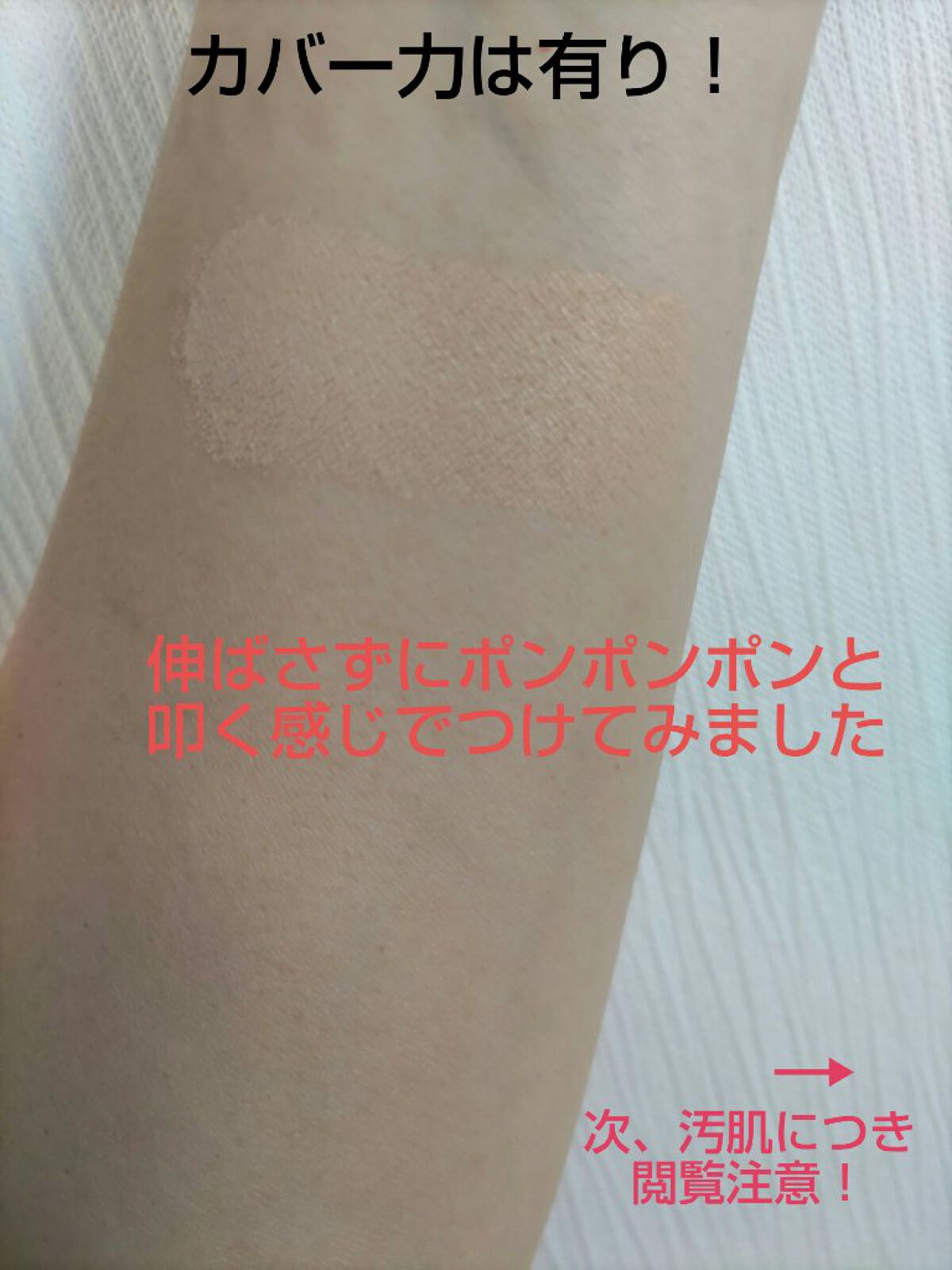 目の下のクマや、シミそばかすが気になるので購入しました! 顔にのせたら自然にクマなどをカバーしてくれます! 腕にある火傷跡が、4枚目の写真ではかなり薄くなってます!