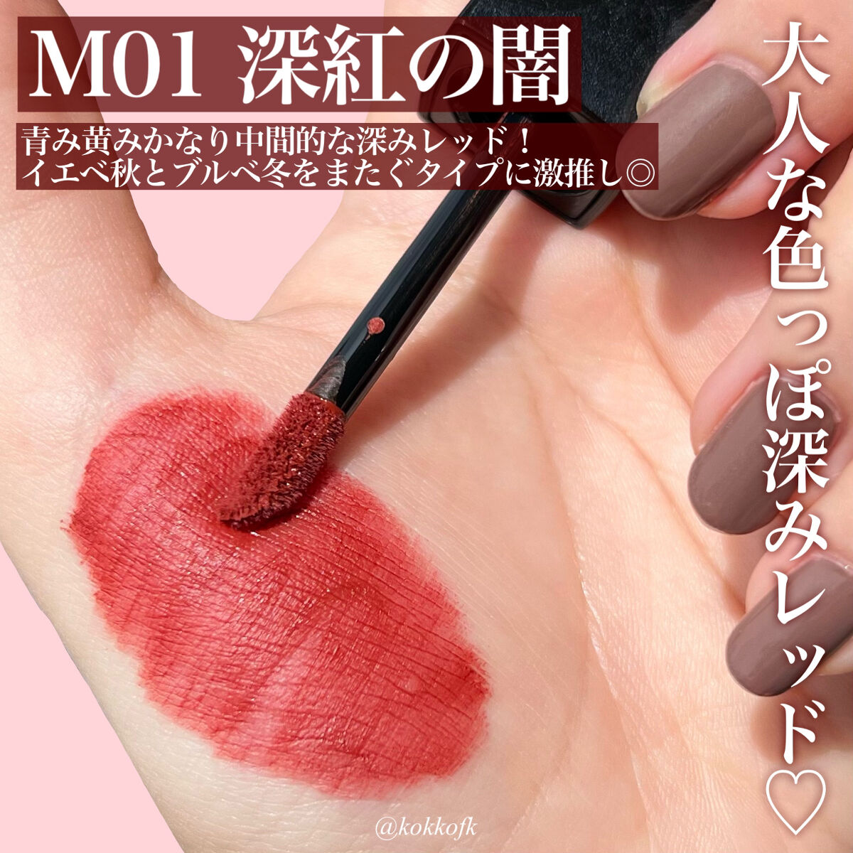 薄く唇に密着する新作マットティント。 マットなのにかなりしっとりとしていて 乾燥を感じなくてびっくりでした! 一気にこなれ感が出るトレンドカラーです♡ やや青みの華やかローズレッド 公式画像より鮮やかめに感じました。 やや黄みの強くて深いオレンジレッド ストロングオータムに超激推しです! やや黄みの非常に深く濃いダークブラウン ディープオータムに激推しです! かわいい雰囲気になれるピンクリップです♡ やや青みの柔らかいくすみピンクベージュ ミューテッドサマーにおすすめです! 青みの落ち着いたローズピンク やや青みのとても鮮やかなビビッドレッド ビビッドウィンターに特におすすめ! 既存マットティントよりもさらに ふわふわなマット感が魅力のリップで、 軽くティッシュオフしてもほとんど落ちない◎ マスクにも激推しのティントなので、 ぜひ皆さんもチェックしてみてね❤︎