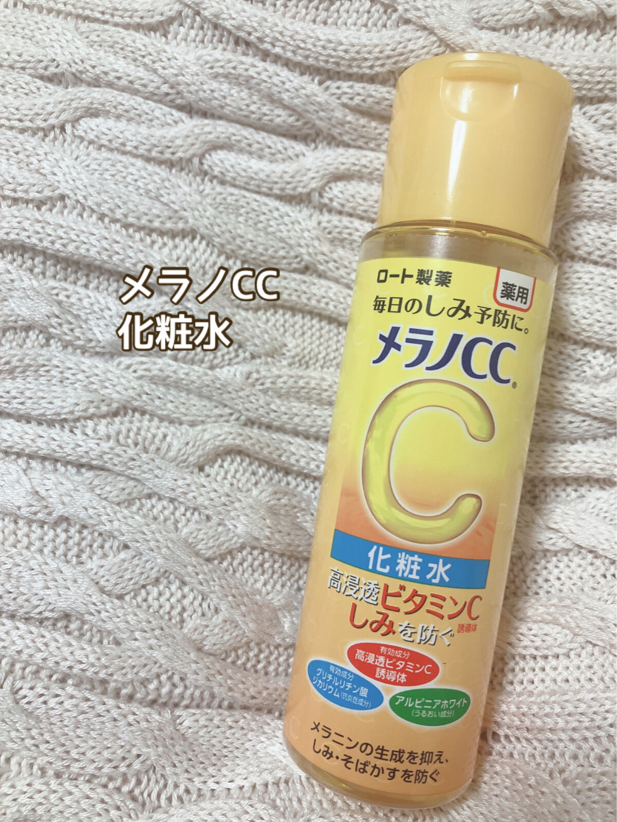 - 「メラノCC 薬用しみ対策 美白化粧水」は、顔全体にうるおいを与えながら、しみ対策できる薬用美白化粧水。 美白有効成分高浸透ビタミンC誘導体*1が角質層すみずみまで浸透し、メラニンの生成を抑え、しみ・そばかすを防ぎ、透明感のある肌へと導きます。 また、抗炎症成分*2と3種のうるおい成分*3を配合。ニキビ痕が気になる肌にもうるおいを与え、肌を整えます。 さわやかな柑橘系の香りです。 *1:3-O-エチルアスコルビン酸 *2:グリチルリチン酸ジカリウム *3:アルピニアホワイト、レモンエキス、グレープフルーツエキス