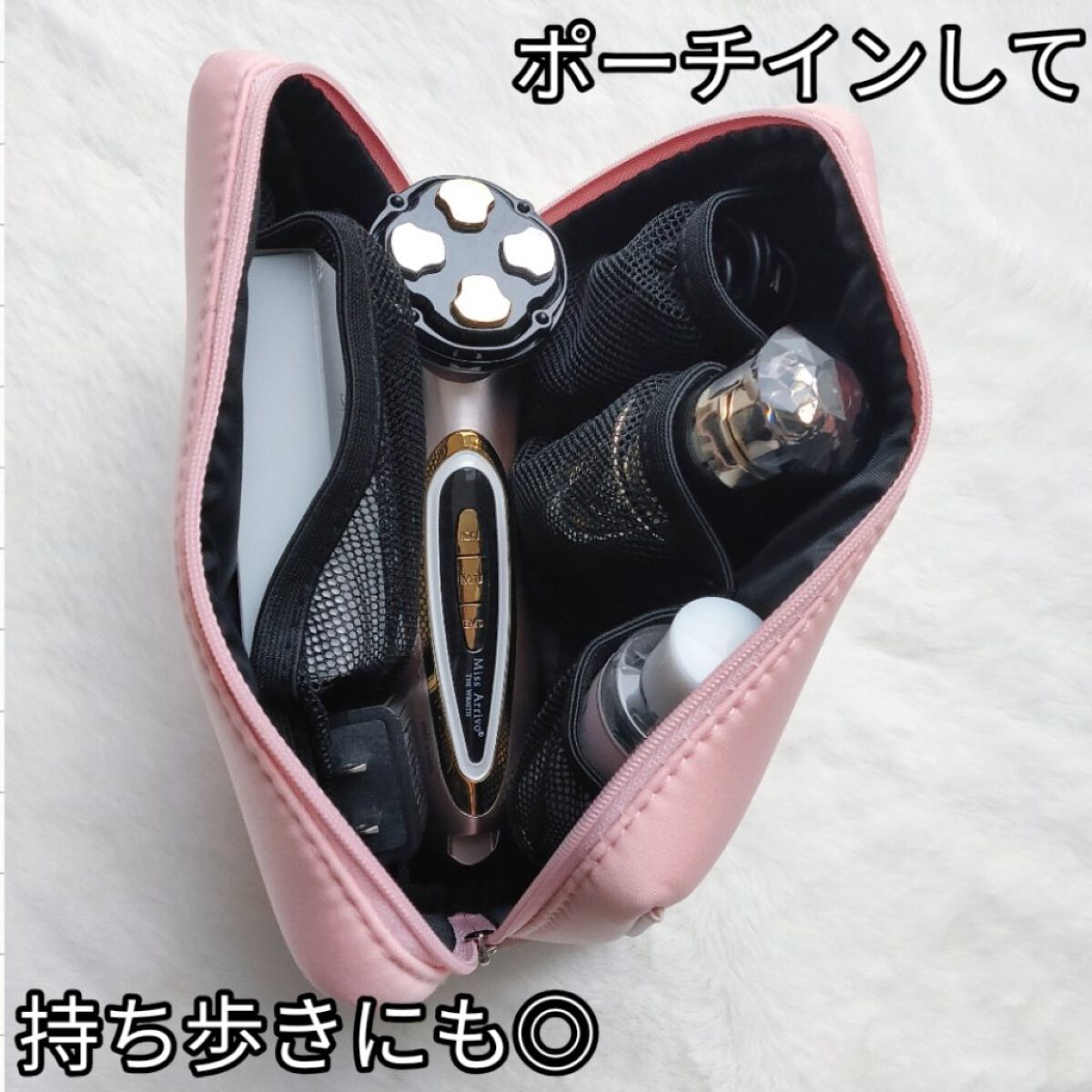 最上位機種の美顔器💆♀️ IONモード 普段の洗顔では落としきれない汚れや角質を落とせる。 M/Uモード 同時に3つの働きをすることで、より効果的に美しさを引き出せるんだって🙊 EMSモード 表情筋などのインナーマッスルを刺激する、微弱電流の作用のEMS。 LED 光の波長によるトリートメントメントは赤❤️年齢によるダメージ、緑💚刺激によるくすみ、青💙肌荒れ等と、どんな肌悩みにもうれしい😊 ボディケアにも使える ボディは強めがお気に入り💕 ローズゴールドは上品な輝き🌹 USB充電で約147gと軽量。シンプルな美しいデザインも、クリアな美しさを引き出してくれそうで、飽きずに使い続けたくなります。 かわいくて機能的なピンクのポーチも便利👝💝