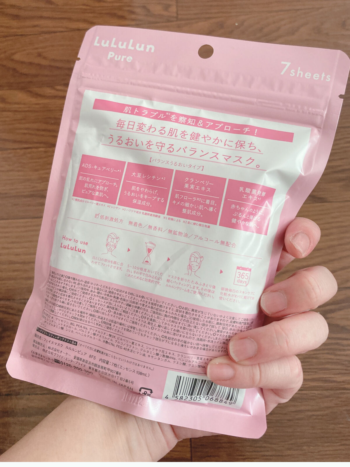 - <ルルルンピュア エブリーズ 32枚入> 水、グリセリン、BG、グリセレス-26、PCA-Na、カカオエキス、ビルベリー葉エキス、シリカ、ベヘニルアルコール、アルギン酸Na、ラウリルベタイ ン、ポリグルタミン酸、トリ(カプリル酸/カプリン酸)グリセリル、レシチン、トコフェロール、クランベリー果実エキス、ワカメエキス、ツボクサエキス、オウ ゴン根エキス、イタドリ根エキス、カンゾウ根エキス、チャ葉エキス、ローズマリー葉エキス、カミツレ花エキス、グリチルリチン酸2K、キサンタンガム、(PEG240/デシルテトラデセス-20/HDI)コポリマー、EDTA-2Na、PEG-40水添ヒマシ油、クエン酸、クエン酸Na、1,2-へキサンジオール、カプリリルグリコール、フェノキ シエタノール、メチルパラベン <ルルルンピュア エブリーズ 7枚入> 水、グリセリン、BG、グリセレス-26、PCA-Na、カカオエキス、ビルベリー葉エキス、シリカ、ベヘニルアルコール、アルギン酸Na、ラウリルベタイ ン、ポリグルタミン酸、トリ(カプリル酸/カプリン酸)グリセリル、レシチン、トコフェロール、クランベリー果実エキス、ワカメエキス、ツボクサエキス、オウ ゴン根エキス、イタドリ根エキス、カンゾウ根エキス、チャ葉エキス、ローズマリー葉エキス、カミツレ花エキス、グリチルリチン酸2K、キサンタンガム、(PEG240/デシルテトラデセス-20/HDI)コポリマー、EDTA-2Na、PEG-40水添ヒマシ油、クエン酸、クエン酸Na、1,2-へキサンジオール、カプリリルグリコール、フェノキ シエタノール、メチルパラベン <ルルルンピュア ピンク(バランス) 7枚入【旧】> 水、グリセリン、BG、PCA-Na、グリチルリチン酸2K、ビルベリー葉エキス、シャクヤク花エキス、クランベリー果実エキス、乳酸桿菌発酵液、バチルス発酵物、レシチン、シトステロール、パルミチン酸アスコルビル、グルコノラクトン、グルタミン酸ジ酢酸4Na、ベンジルアルコール、アルギン酸Na、ラウリルベタイン、ポリグルタミン酸、シリカ、ベヘニルアルコール、水酸化Na、PEG-40水添ヒマシ油、キサンタンガム、クエン酸、クエン酸Na、フェノキシエタノール、メチルパラベン <ルルルンピュア ピンク(バランス) 36枚入【旧】> 水、グリセリン、BG、PCA-Na、グリチルリチン酸2K、ビルベリー葉エキス、シャクヤク花エキス、クランベリー果実エキス、乳酸桿菌発酵液、バチルス発酵物、レシチン、シトステロール、パルミチン酸アスコルビル、グルコノラクトン、グルタミン酸ジ酢酸4Na、ベンジルアルコール、アルギン酸Na、ラウリルベタイン、ポリグルタミン酸、シリカ、ベヘニルアルコール、水酸化Na、PEG-40水添ヒマシ油、キサンタンガム、クエン酸、クエン酸Na、フェノキシエタノール、メチルパラベン