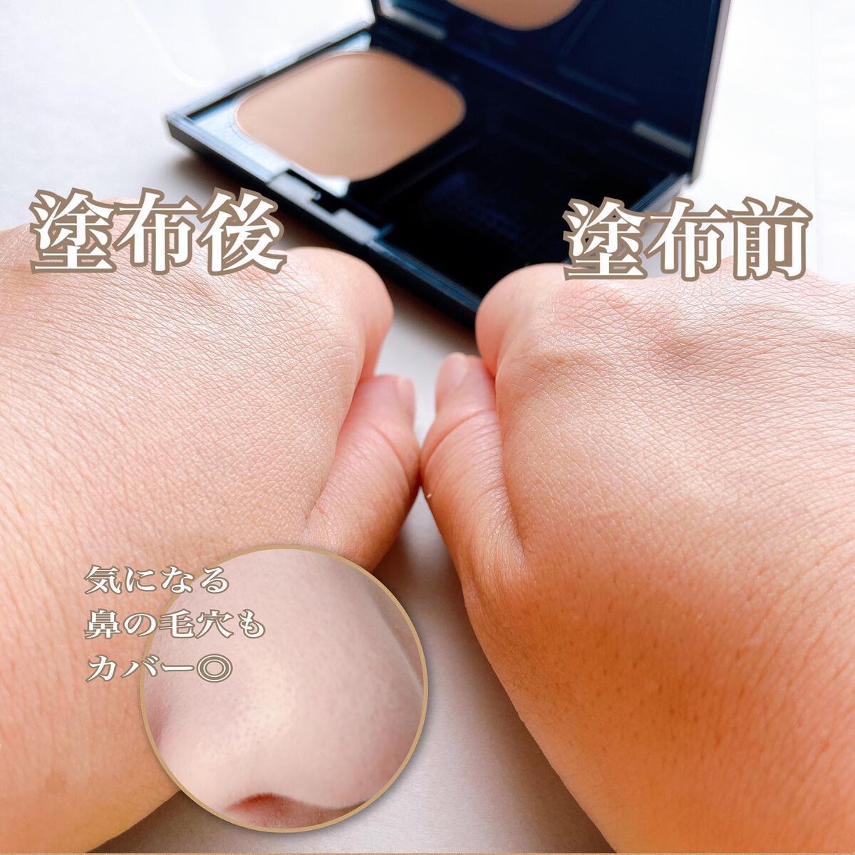 オイル高配合だからピタッと密着して毛穴をカバーし、粉感もない美しい仕上がり◎ 粉っぽく無い質感も好き!オイルの配合量が高いから粉浮きが目立たない◎ ナチュラルに見えるのに、隠したいポイントはきちんとカバーできているのが凄い。