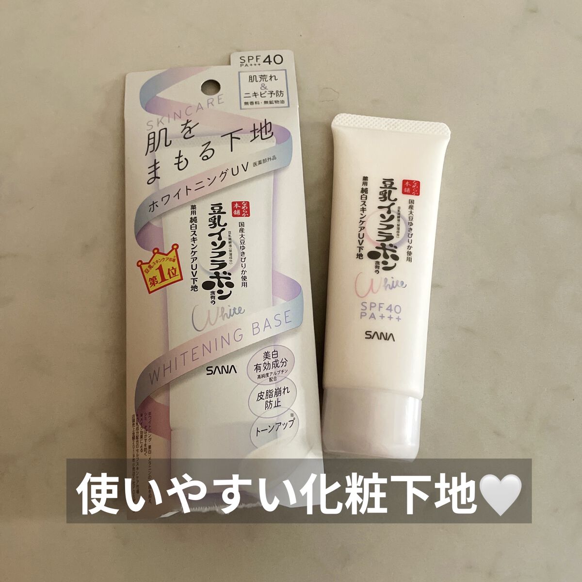 - <スキンケアUV下地> 豆乳のスキンケアUV下地。低刺激&ノンケミカル(紫外線吸収剤不使用)。肌色補正(メイク効果による)&皮脂崩れ防止。化粧水・美容液・乳液・クリーム・UVカット・化粧下地の1本6役。SPF40・PA+++。