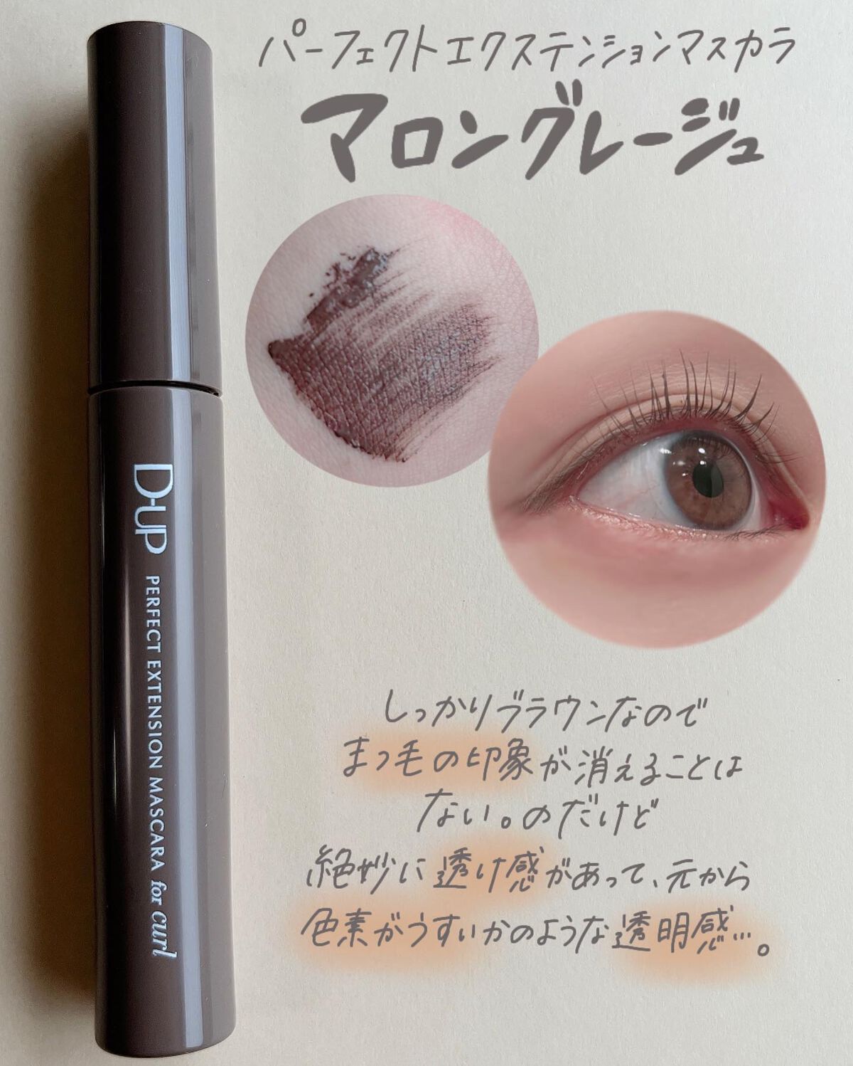 ふんわり上向きまつげを1日キープする、“ふんわりカール”マスカラ。まつげにするする絡んでダマにならず、なめらかに伸びて繊細な上向きまつげに仕上がります。 VOCEやMAQUIAなど有名美容誌で2023年にマスカラ部門 1位を獲得している大人気マスカラ!今回のカラーは【ピンクブラウン】です。ブラウンベースで自まつ毛にもなじみやすいくすみピンク。 こちらも同じく人気美容誌等でベストコスメを受賞しているアイライナー。今回のカラーは【ピーチブラウン】です。濃厚なブラウンにほんのり赤みをプラスしたカラー。