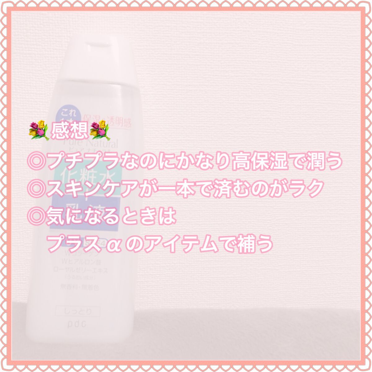 pdcピュアナチュラルエッセンスローションUVスキンケアをするのが面倒くさい時にとりあえずこれを使用してます😂❣️化粧水と乳液これひとつで乾燥対策にも✨乾燥による敏感肌にも🆗テクスチャーはとろっとしたみずみずしい乳液タイプ。肌馴染みがよくスー...