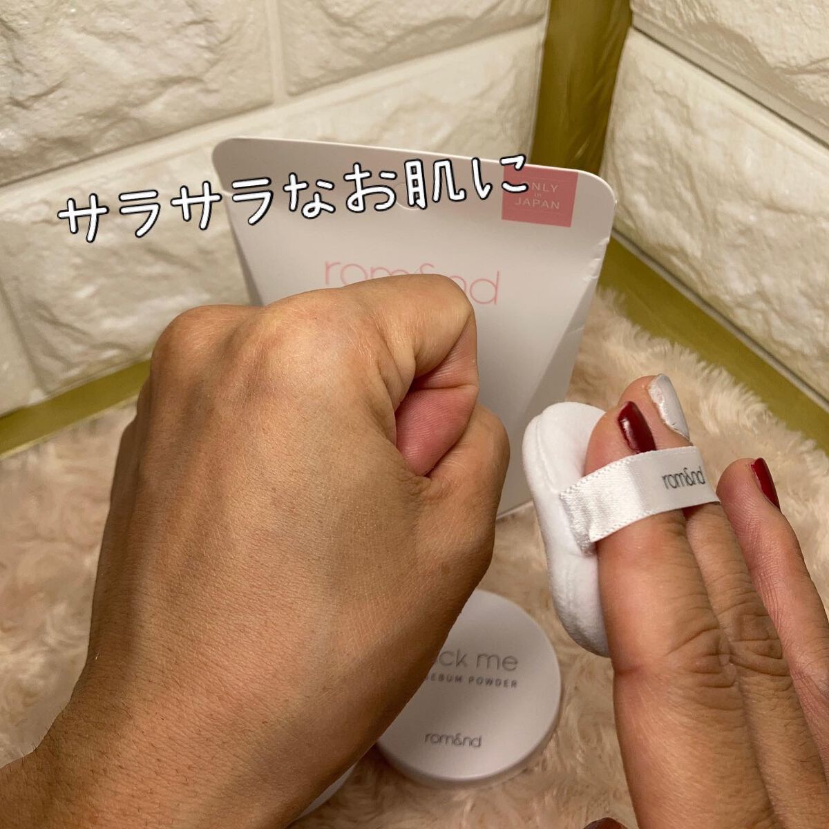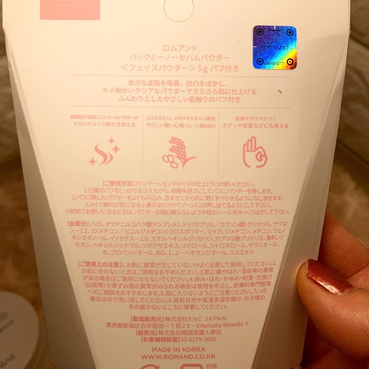 rom&ndロムアンドバックミーノーセバムパウダー5gメガポで購入したものです。サラサラ系のパウダー好きなのでこれもよかったです💗イニスフリーのノーセバムに比べるとイニスフリーの方が粒子が細かくてサラサラ感がある感じがしました。でも微々たる差...