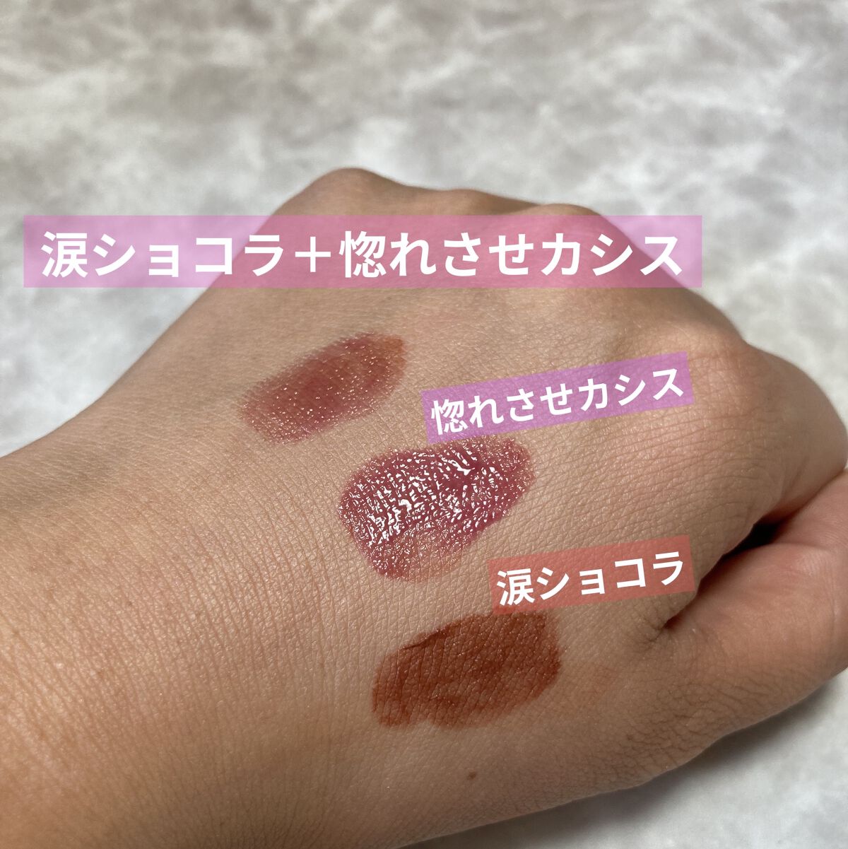 B IDOLのアイシャドウが大好きで良く使っていて、新作がでたので買いに行った時にテスターしたら可愛すぎて思わず買ってしまったリップたち😂 ブルベおすすめと言われてたつやぷるリップの惚れさせCASSIS、深い色だけど、透け感があるから使いやすい✨ ですが!!それ以上にむっちリップ涙ショコラがとてもとても良かった!! ふわっとしたマットで塗り心地、つけた後の感覚も良い。色がピンク味のあるブラウンが絶妙✨ このブラウンリップはすごく肌馴染みが良い、でも馴染みすぎずきちんとブラウンが発色されていて、色々なメイクに合うから好き!! 若干乾燥を感じたので、下地にリップをしっかり塗るか吉田朱里さんがおすすめしていたむっちリップの上につやぷるリップを重ねる方法を使ってます✨ ちなみに涙ショコラの上に惚れさせCASSISを重ねる色味もすごくお気に入り💕 私の中で今年のベスコスリップはむっちリップの涙ショコラに決定ですー!! まだまだ販売している店舗も見かけたので悩んでいる方は見に行ってみて欲しいです✨