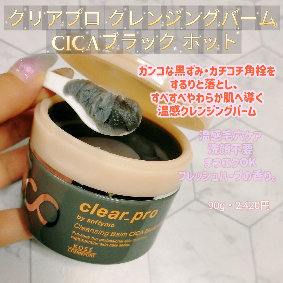 ブランド名:ソフティモ(KOSE)製品名:ソフティモクリアプロクレンジングバームCICAブラックホットカテゴリー:クレンジングバーム内容量:90gW洗顔不要日本製某所で半額で叩き売りされていたので購入。KOSEのコンシューマー向けブランドのク...