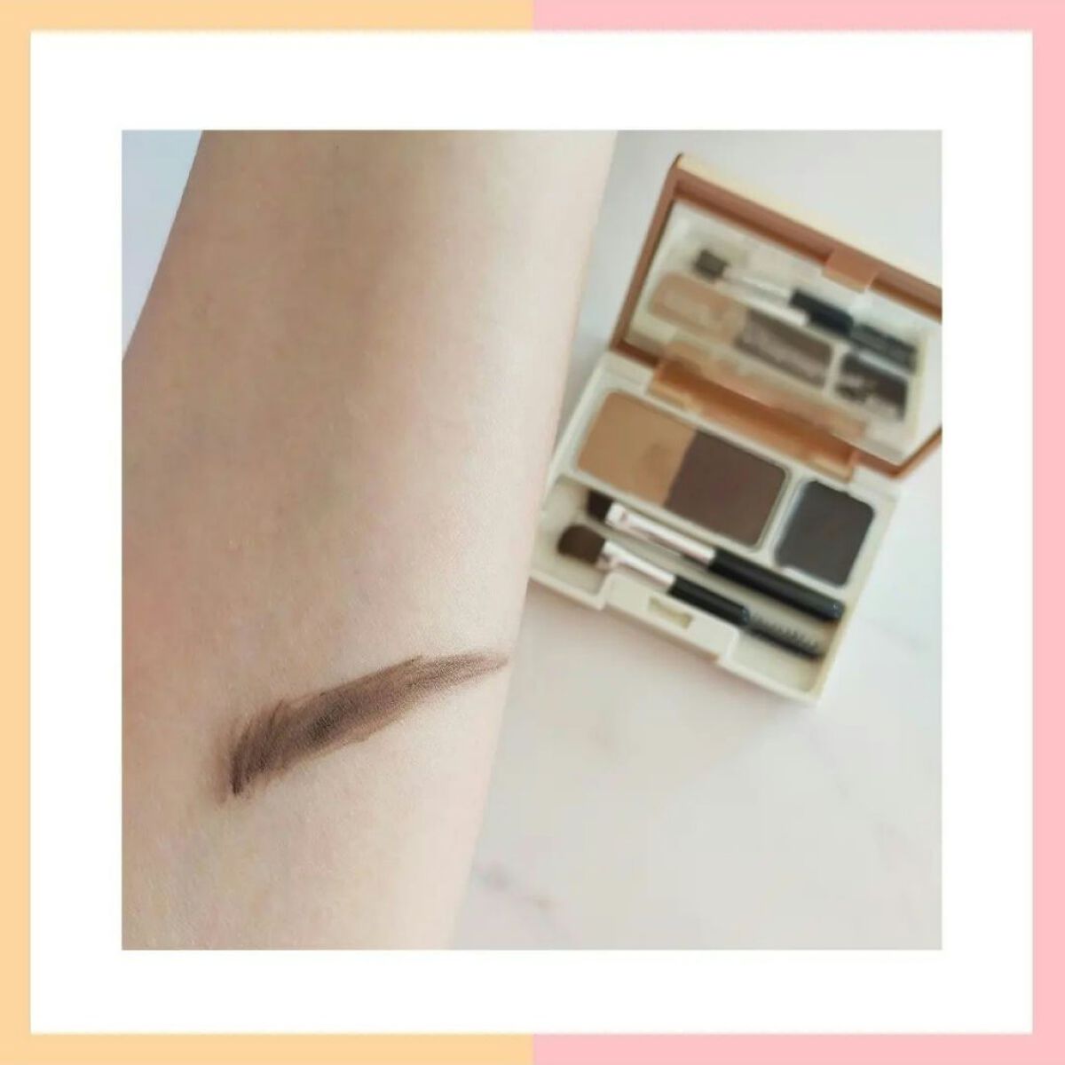 どの色も肌馴染みが良くて重宝しています◎ バームとパウダーを重ねて使うことでウォータープルーフタイプになるので色持ちも良いです。 パレットの中の一番右側のぴたっとバームと、左2色ふんわりパウダーで、汗.水.皮脂に強いアイブロウパレット。 アイブロウだけではなくシェーディングやアイシャドウにも使える優れもの❣ 付属の二本のブラシは細型と太型で使い分けができるのでとても使いやすいです。