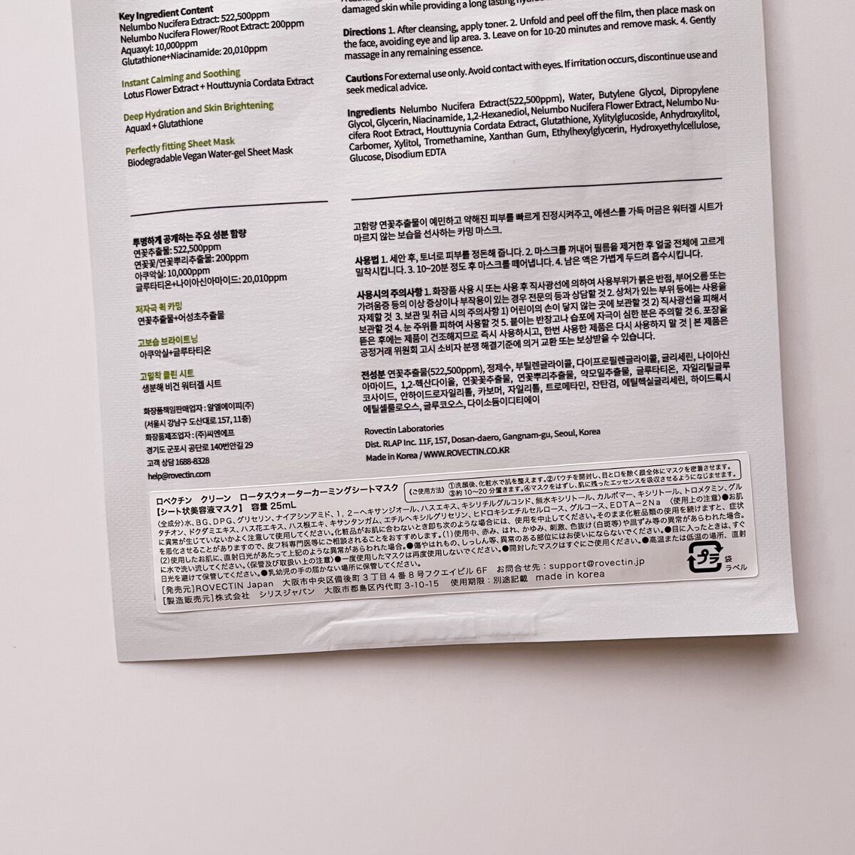 商品詳細情報ロベクチン クリーン ロータスウォーターカーミングシートマスク