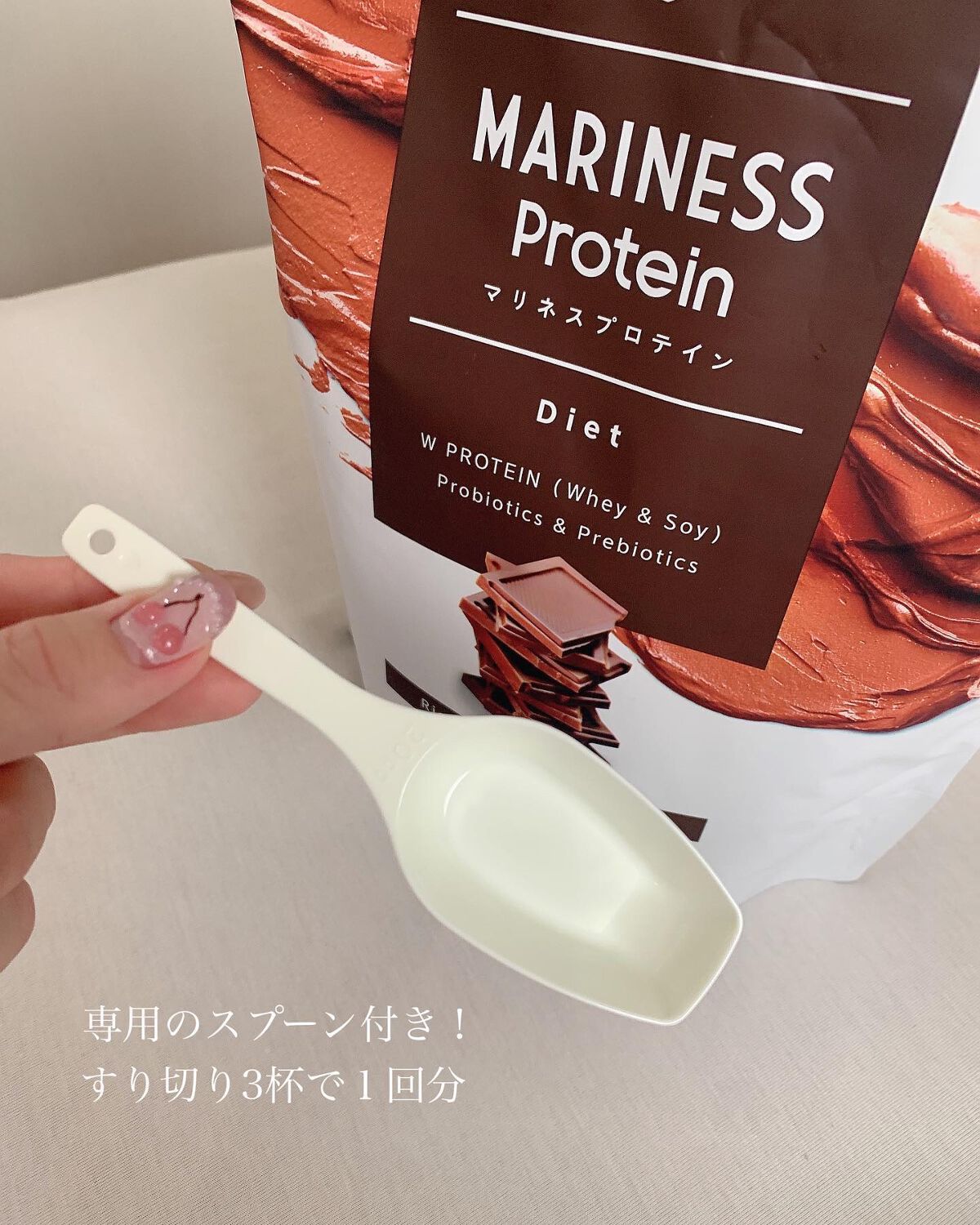 私の大好きなマリネスのプロテイン! プロテインはマリネス!な我が家は今までバナナ、チョコ、ブルーベリーヨーグルト、抹茶ラテ、ロイヤルミルクティー、黒ゴマきなこほぼ全制覇するんじゃないかくらいリピートしています🥰 甘みの中に、少し酸味も感じられるので甘ったるくなく、くどくないから飲みやすい🙆♀️ マリネスのいいところは溶けやすいこと!粉っぽさがなく良き◎腹持ちの良さも◎置き換えしたい人にもいい🙌