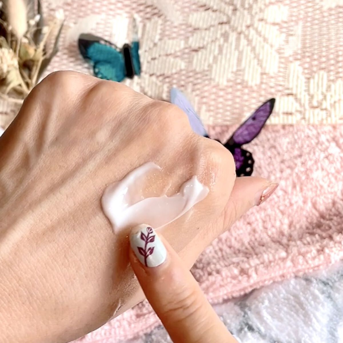 使用目安2、3プッシュとありますがピンポイントで特にケアしたい部分(例えば、鼻・小鼻・上瞼や下瞼周辺・頬付近三角ゾーン・顎・おでこにちょんちょん)全てにそれぞれ丁寧に塗り込むには、のびがいいので1プッシュでも充分に足りるくらい。 最初押し出した時は形が崩れないぷるんとした柔らかめのジェリー状のような雰囲気。 指で伸ばすと とぅるんとなめらかにのびて、馴染ませると手と肌がぴたっと吸い付くような潤い感。 香りが強くないのに、さり気ない爽やかな清潔感のある香りがほんのりするところもすごく好みです。