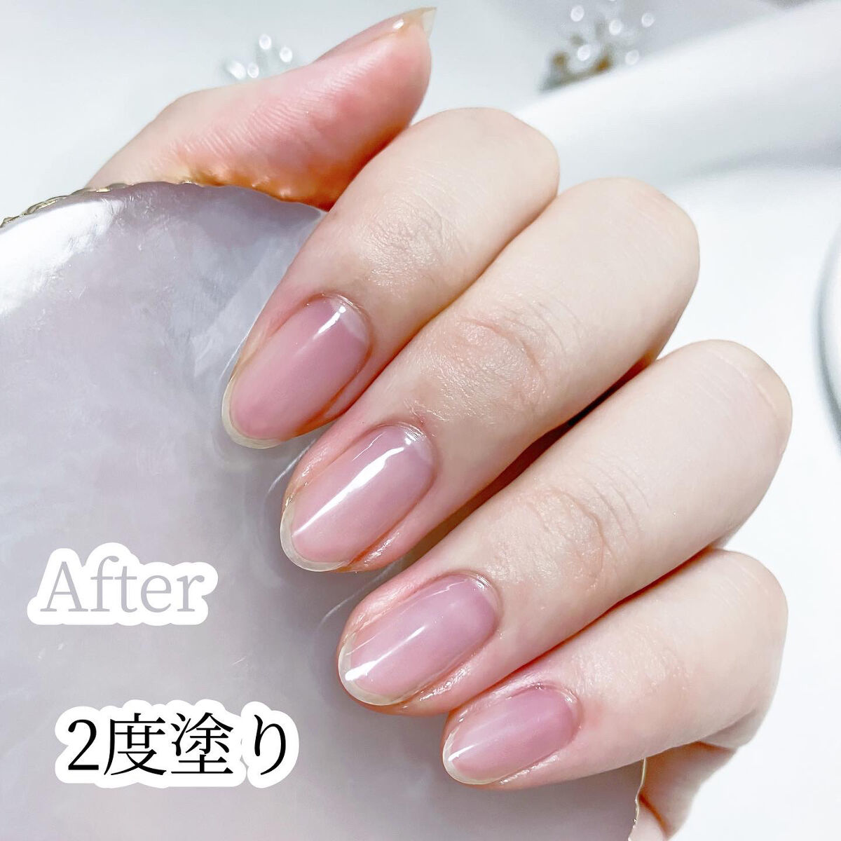 プレビュートグロスフォーユアネイル紫色ですが爪に乗せるとほとんど目立たず程よいツヤ感が気に入りました♡黄ばみを抑えてくれる色なのでひと塗りで無色クリアーな爪に変身させてくれます🫶🏻飲食店や店頭などで、アルコール消毒をしてもネイルが落ちないオー...