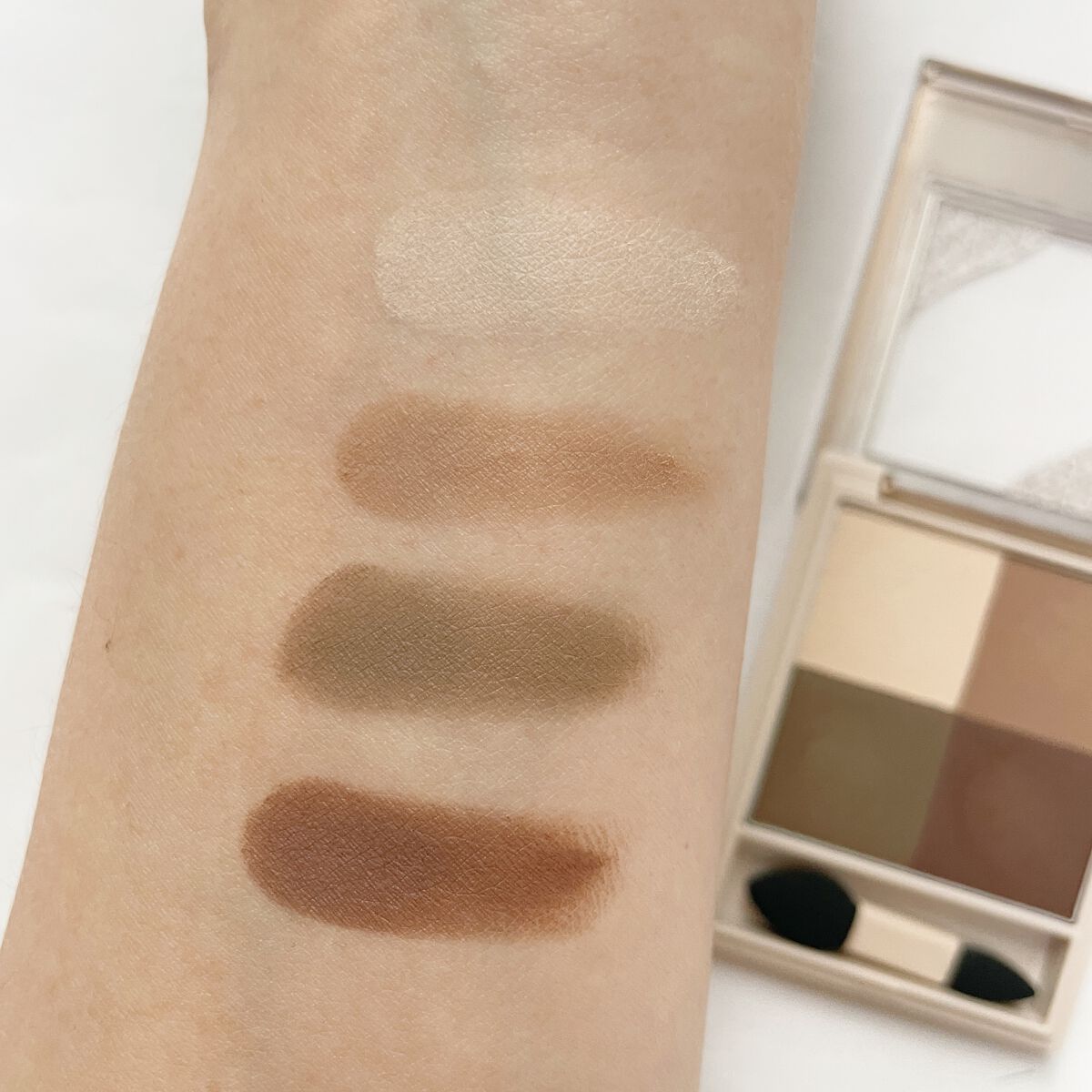 - マットな質感なのに、透け感のあるシアーな発色の4色セットアイカラーです。 美しいグラデーションで自然な立体感のある目もとへ導きます。 軽い感触で伸び広がり、肌に溶け込むように馴染むクリアパウダー(※1)を配合したことで、 ふんわりと透けるような発色でありながら、立体感のある目もとを叶えます。 4色のパレットのうち、左上には、重ねる色を美しく引き立てる「スキンリセットカラー」を配置。 ファンデーションのように、まぶたのくすみや色ムラを自然にカバーします。 (※1)窒化ホウ素