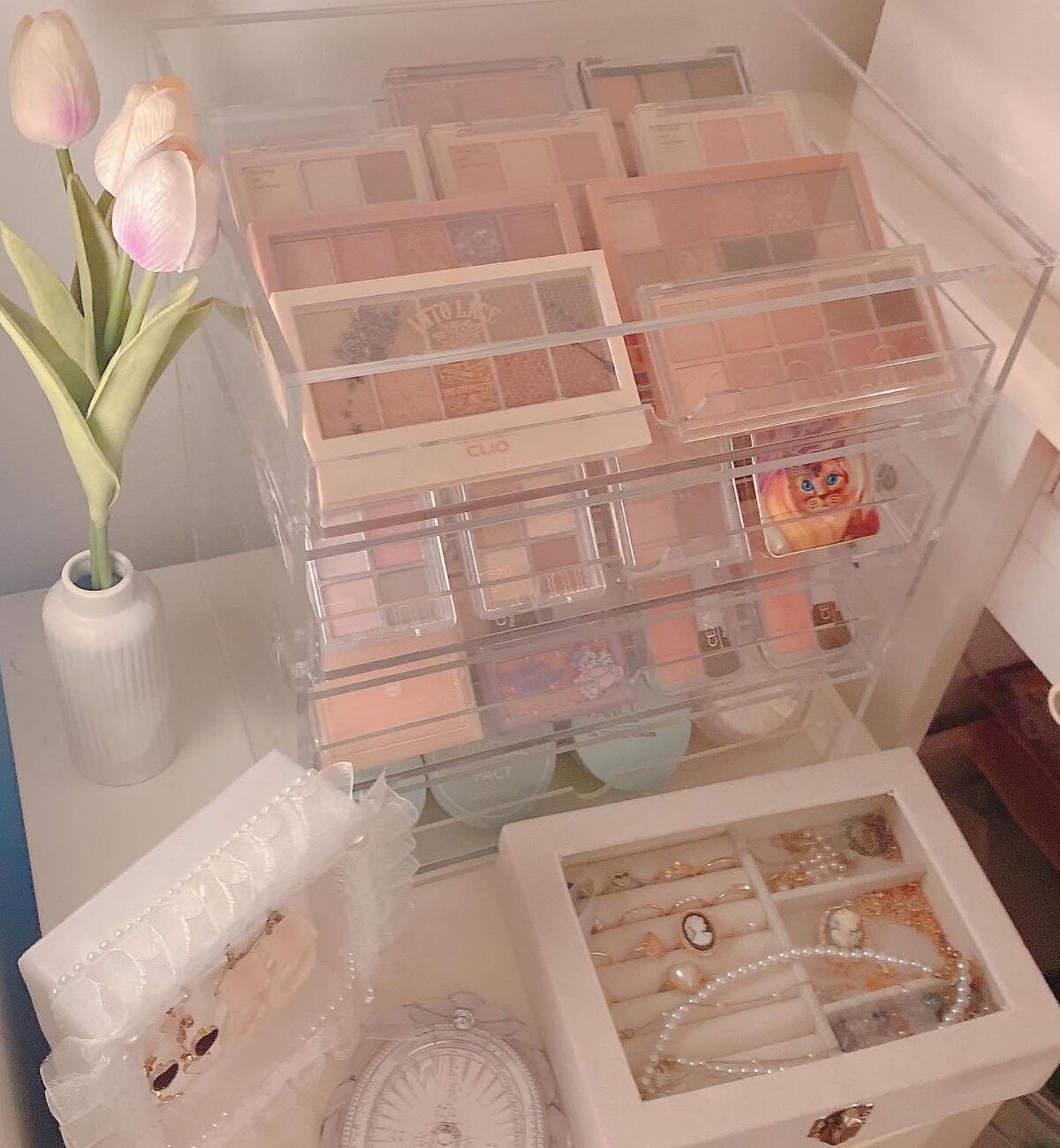 たくさんコスメが収納できるだけではなく、探しやすい取り出しやすくてまさに理想のコスメ収納です✨ 1点だけ私は不器用なのでアクリル接着剤が凄く難しかったです😭 側面に接着剤が着いてしまい、写真のようにヒビが入ったみたいになってしまいました… 正面から見たら可愛いので問題ないです🙆♀️?