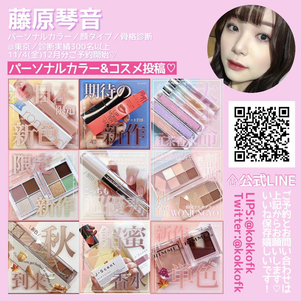 薄く唇に密着する新作マットティント。 マットなのにかなりしっとりとしていて 乾燥を感じなくてびっくりでした! 一気にこなれ感が出るトレンドカラーです♡ やや青みの華やかローズレッド 公式画像より鮮やかめに感じました。 やや黄みの強くて深いオレンジレッド ストロングオータムに超激推しです! やや黄みの非常に深く濃いダークブラウン ディープオータムに激推しです! かわいい雰囲気になれるピンクリップです♡ やや青みの柔らかいくすみピンクベージュ ミューテッドサマーにおすすめです! 青みの落ち着いたローズピンク やや青みのとても鮮やかなビビッドレッド ビビッドウィンターに特におすすめ! 既存マットティントよりもさらに ふわふわなマット感が魅力のリップで、 軽くティッシュオフしてもほとんど落ちない◎ マスクにも激推しのティントなので、 ぜひ皆さんもチェックしてみてね❤︎