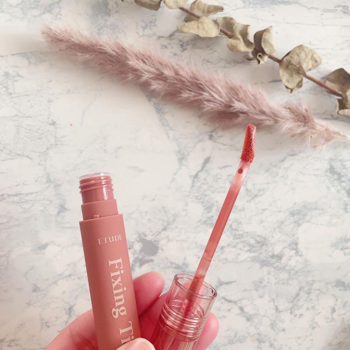 マスクプルーフ*リップだそうで、マスクとの摩擦にも強く、色移りしにくいティントです。 マットな仕上がりなのに乾燥しにくい一番よかったところ!唇に角質がかなりある方なので、マット仕上がりのリップを使うと、どうしても唇の角質が目立ってしまって汚く見えるので、なかなかマット仕上がりのリップが使えなかったですが、エチュードのフィクシングティントはそのような悩みを解決! カラーを長時間キープしっかり密着され、色落ちを抑えてくれて、なかなか落ちにくい。