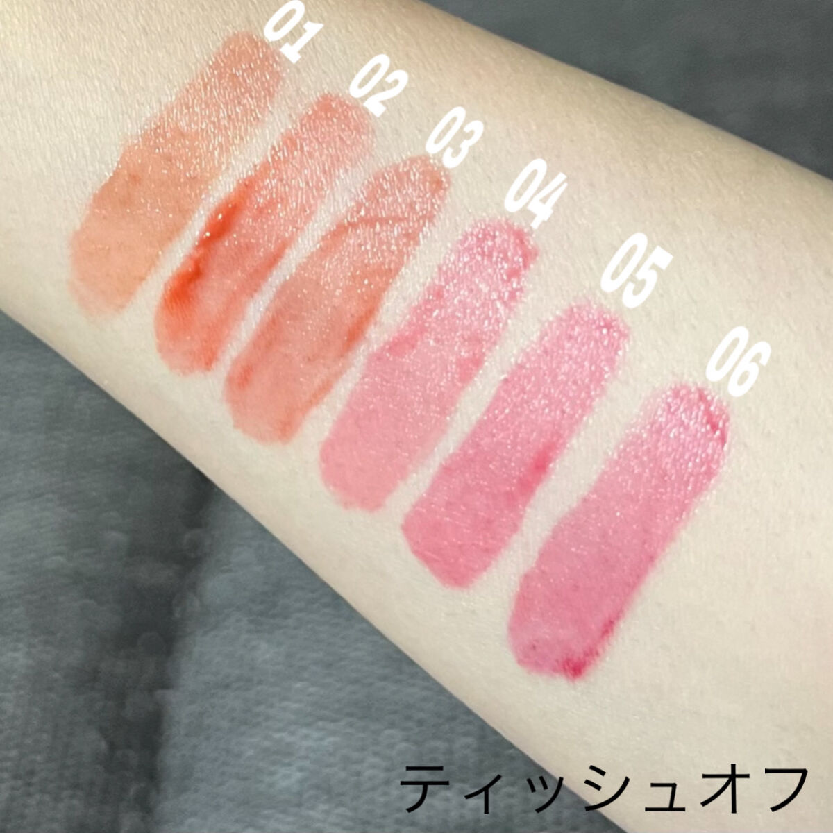 - <01 BEST BEIGE MENU(推し杏子ベージュ)> 水、ジフェニルジメチコン、リンゴ酸ジイソステアリル、ビスジグリセリルボリアシルアジペート-2、水添ポリイソブテン、ダイマー ジリノール酸ダイマージリノレイルビス(ベヘニル/イソステアリル/フィトステリル)、ジグリセリン、セチルPEG/PPG-10/1ジメチコン、DPG、水添ポリ (C6-14 オレフィン)、ポリソルベート60、イソステアリン酸ソルビタン、ダイマージリノール酸ジイソステアリン酸ポリ グリセリル-3、ペンチレングリコール、(アクリル酸ヒドロキシエチル/アクリロイルジメチルタウリンNa)コポリマー、トリ(カプリル酸/ カプリン酸)グリセリル、スクワラン、セテアレス-20、(エチレン/プロピレン)コポリマー、フェノキシエタノール、グリセリン、ポリグリ セリン-3、香料、エチルヘキシルグリセリン、ハマメリス葉エキス、オニユリエキス、BG、酸化チタン、黄5、赤227、赤104(1)、青1 <02 CORAL INFLUENCER(イエベ必須コーラル)> 水、ジフェニルジメチコン、リンゴ酸ジイソステアリル、ビスジグリセリルボリアシルアジペート-2、水添ポリイソブテン、ダイマー ジリノール酸ダイマージリノレイルビス(ベヘニル/イソステアリル/フィトステリル)、ジグリセリン、セチルPEG/PPG-10/1ジメチコン、DPG、水添ポリ (C6-14 オレフィン)、ポリソルベート60、イソステアリン酸ソルビタン、ダイマージリノール酸ジイソステアリン酸ポリ グリセリル-3、ペンチレングリコール、(アクリル酸ヒドロキシエチル/アクリロイルジメチルタウリンNa)コポリマー、トリ(カプリル酸/ カプリン酸)グリセリル、スクワラン、セテアレス-20、(エチレン/プロピレン)コポリマー、フェノキシエタノール、グリセリン、ポリグリ セリン-3、香料、エチルヘキシルグリセリン、ハマメリス葉エキス、オニユリエキス、BG、酸化チタン、黄5、赤227、赤104(1)、青1 <03 ROSE IN MIND(いいねローズ)> 水、ジフェニルジメチコン、リンゴ酸ジイソステアリル、ビスジグリセリルポリアシルアジペート-2、水添ポリイソブテン、ダイマージリノール酸ダイマージリノレイルビス(ベヘニル/イソステアリル/フィトステリル)、ジグリセリン、DPG、セチルPEG/PPG-10/1ジメチコン、水添ポリデセン、ポリソルベート60、イソステアリン酸ソルビタン、ダイマージリノール酸ジイソステアリン酸ポリグリセリル-3、ペンチレングリコール、(アクリル酸ヒドロキシエチル/アクリロイルジメチルタウリンNa)コポリマー、トリ(カプリル酸/カプリン酸)グリセリル、スクワラン、セテアレス-20、(エチレン/プロピレン)コポリマー、フェノキシエタノール、グリセリン、香料、エチルヘキシルグリセリン、ハマメリス葉エキス、オニユリエキス、BG、テトラ(ジ-t-ブチルヒドロキシヒドロケイヒ酸)ペンタエリスリチル、酸化チタン、黄5、赤104(1)、赤227、青1 <04 PINK YOUTH(ベイビー天使)> 水、ジフェニルジメチコン、リンゴ酸ジイソステアリル、ビスジグリセリルボリアシルアジペート-2、水添ポリイソブテン、ダイマー ジリノール酸ダイマージリノレイルビス(ベヘニル/イソステアリル/フィトステリル)、ジグリセリン、セチルPEG/PPG-10/1ジメチコン、DPG、水添ポリ (C6-14オレフィン)、ポリソルベート60、イソステアリン酸ソルビタン、ダイマージリノール酸ジイソステアリン酸ポリ グリセリル-3、ペンチレングリコール、(アクリル酸ヒドロキシエチル/アクリロイルジメチルタウリンNa)コポリマー、トリ(カプリル酸/ カプリン酸)グリセリル、スクワラン、セテアレス-20、(エチレン/プロピレン)コポリマー、フェノキシエタノール、ポリグリセリン-3、香料、エチルヘキシルグリセリン、グリセリン、水酸化Al、ポリアクリル酸アンモニウム、BG、ハマメリス葉エキス、オニユリエキス、酸化チタン、赤227、黄4、赤104 (1) 黄5、青1 <05 CHERRY SO WHAT(どうしたのチェリー)> 水、ジフェニルジメチコン、リンゴ酸ジイソステアリル、ビスジグリセリルポリアシルアジペート-2、水添ポリイソブテン、ダイマージリノール酸ダイマージリノレイルビス(ベヘニル/イソステアリル/フィトステリル)、ジグリセリン、セチルPEG/PPG-10/1ジメチコン、DPG、水添ポリ(C6-14オレフィン)、ポリソルベート60、イソステアリン酸ソルビタン、ダイマージリノール酸ジイソステアリン酸ポリグリセリル-3、ペンチレングリコール、(アクリル酸ヒドロキシエチル/アクリロイルジメチルタウリンNa)コポリマー、トリ(カプリル酸/カプリン酸)グリセリル、スクワラン、セテアレス-20、(エチレン/プロピレン)コポリマー、フェノキシエタノール、ポリグリセリン-3、香料、エチルヘキシルグリセリン、グリセリン、ハマメリス葉エキス、オニユリエキス、BG、赤227、黄4、赤104(1)、黄5、青1 <06 PLUM UPDATE(プロフ写プラム)> 水、ジフェニルジメチコン、リンゴ酸ジイソステアリル、ビスジグリセリルポリアシルアジペート-2、水添ポリイソブテン、ダイマー ジリノール酸ダイマージリノレイルビス(ベヘニル/イソステアリル/フィトステリル)、