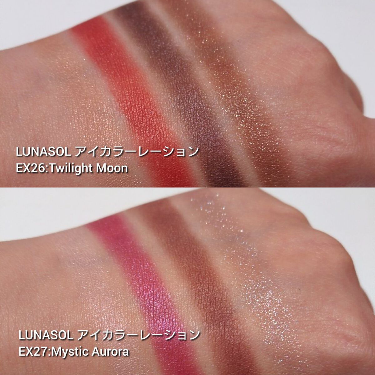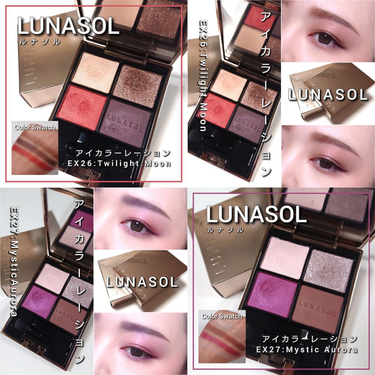 LUNASOLアイカラーレーションEX27MysticAurora⭐️2022年11月18日発売⭐️#ひかるんからのクリスマスプレゼント🎄🎅🎁ありがとう😭🩷パープルの配色が最高に可愛いパレット꒰ᐡ•͈⤚•͈ᐡ꒱♡1⃣右上をベースと涙袋に✨️...