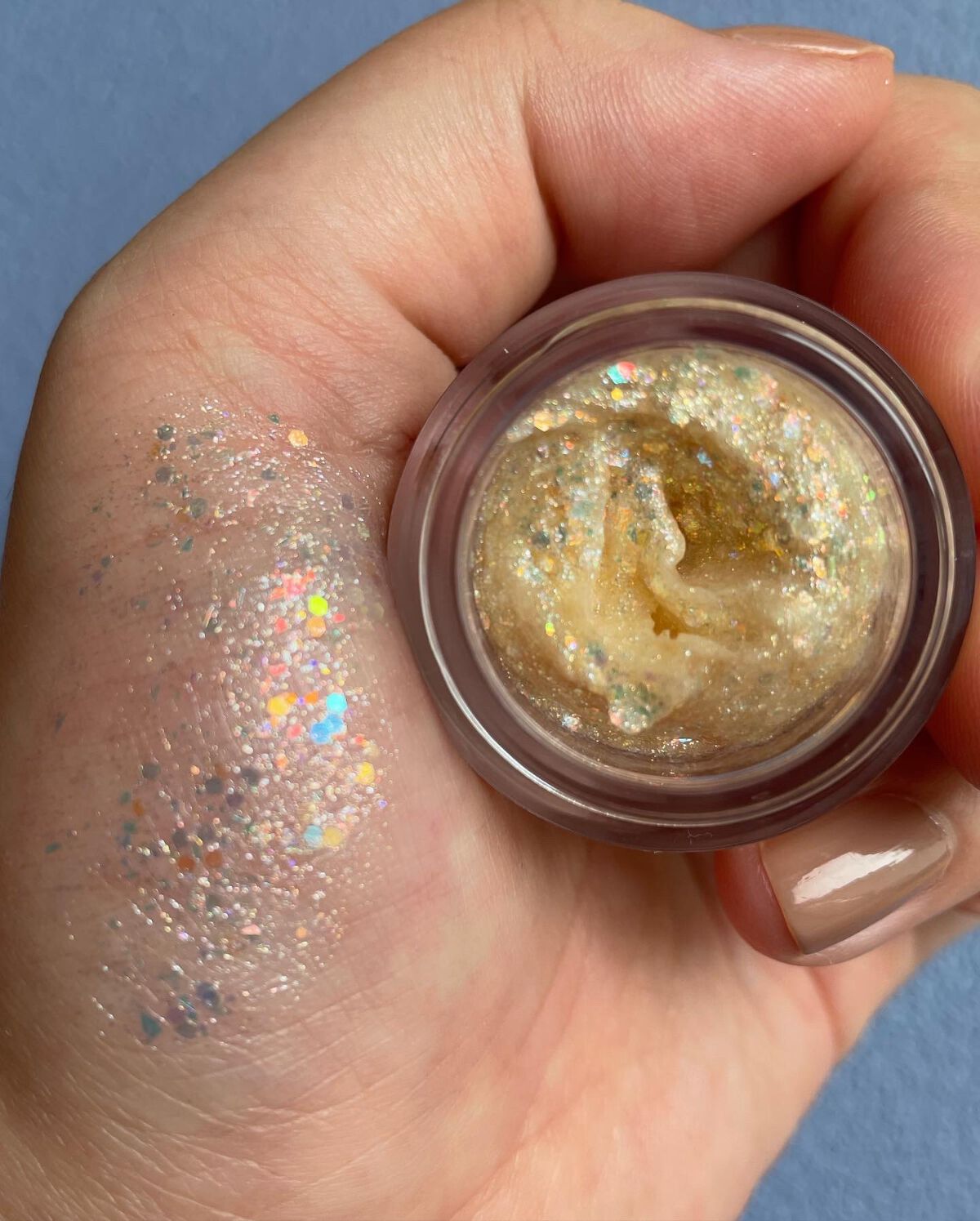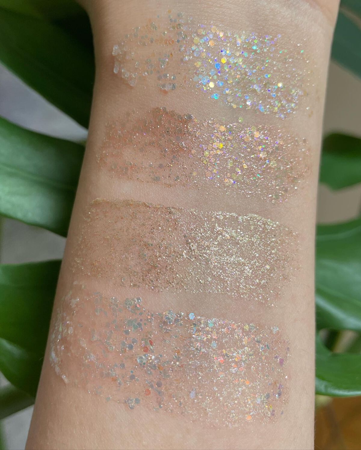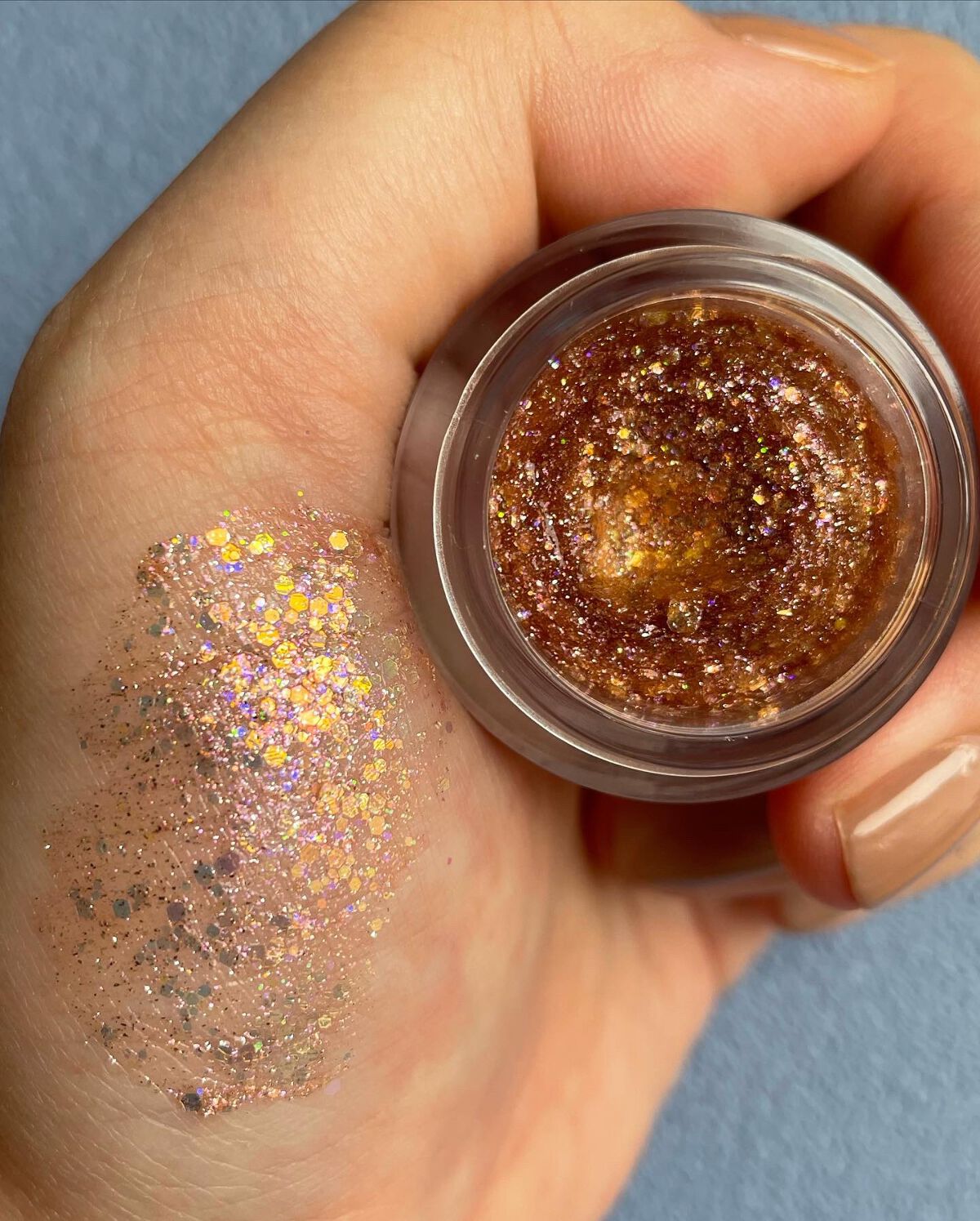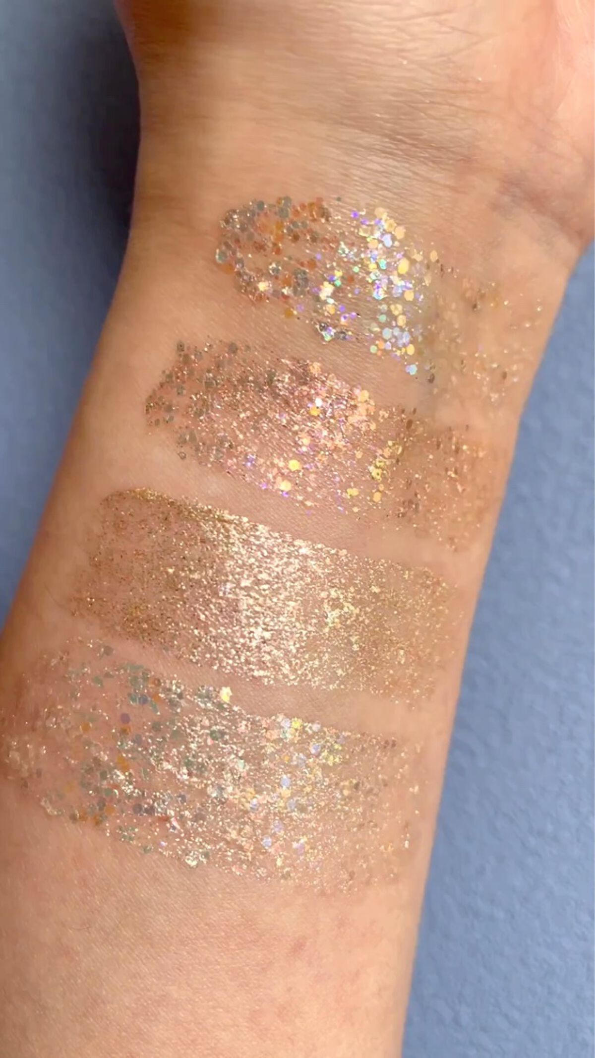 Glintのグリッタージェルは、アイメイクの他チークやボディ、髪にも使用できるグリッタージェル🤭✨ 大きめなグリッターで、私は主にアイシャドウとして使っています。アイホール中央にちょんとのせると、一気に華やかになって🙆🏻♀️✨ 存在感もあるし、大きめサイズのグリッターでガラスの欠片のような光を含むからキラキラと光を反射✨