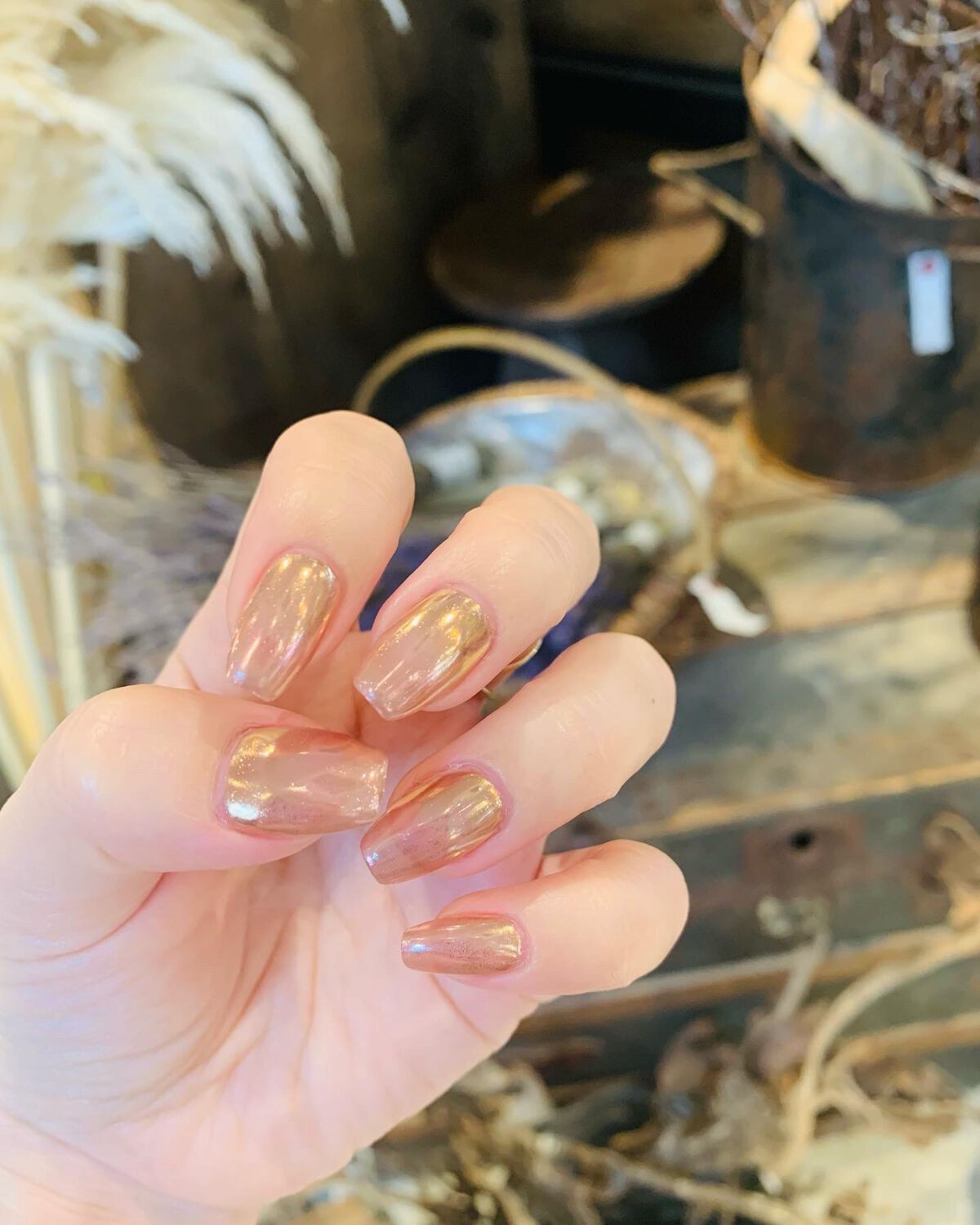 夏に使いたいミラーネイルネイルタウンニュアンスクロムパウダー\ネイル初心者の私が使ってみたよ/ミラーパウダーはネイルタウンで買ったよクリアなケースにチップが1本ついてる。カラーは全部で5色。・タイプAシルバー系見た目は暗めのグリーン系。寒色系...