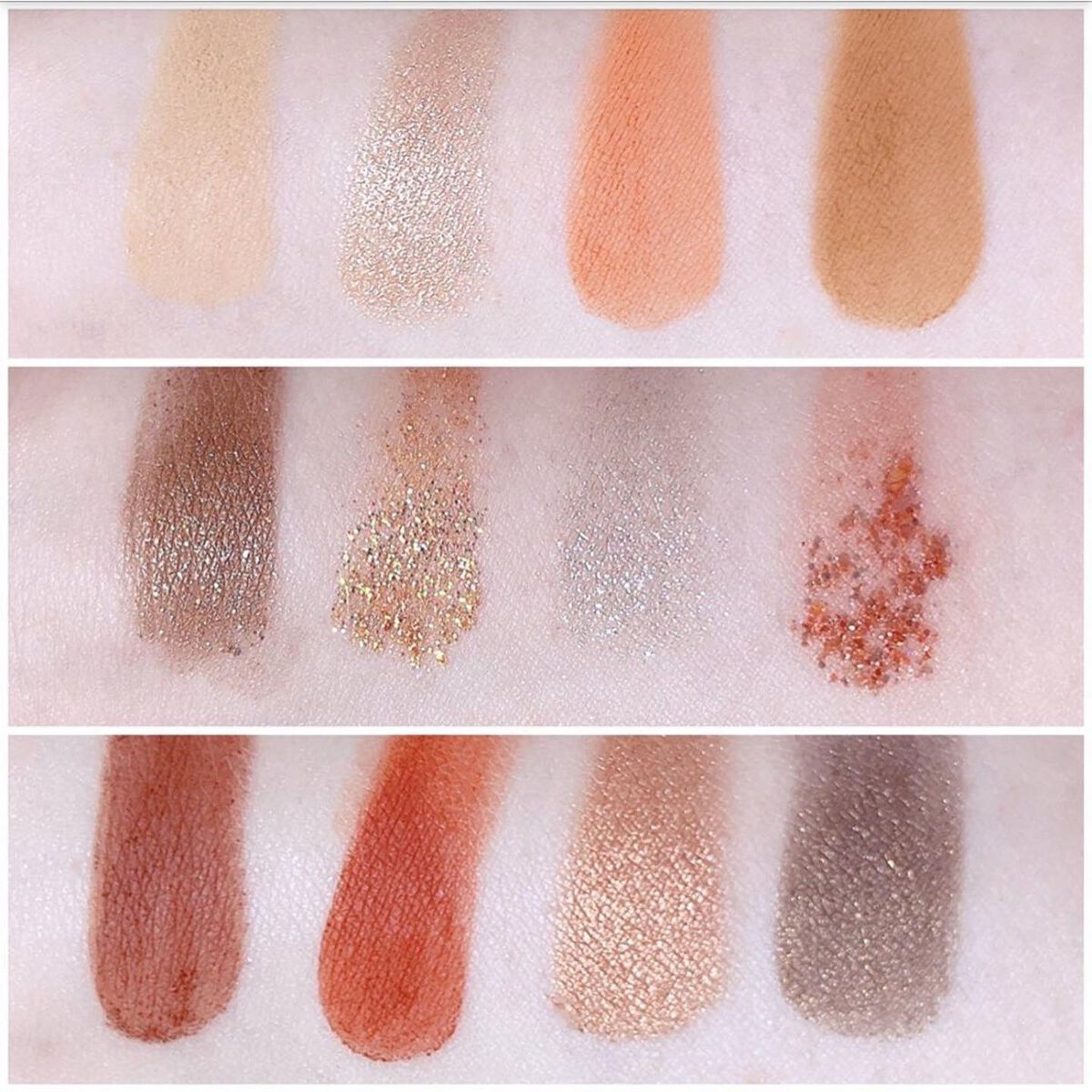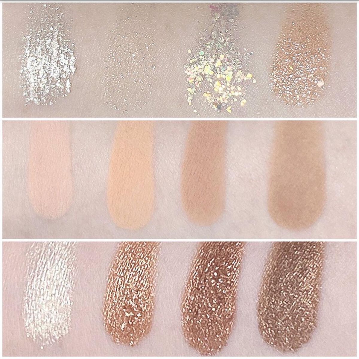 色の組み合わせが絶妙で 使いやすいニュアンスカラーが揃ってるところ! ふわっとしまマットカラーは馴染みが良く、繊細な輝きのラメとの相性がすごく良い🥹 ナチュラルなのにちゃんと盛れる、 王道アイパレットだなと感じました♡