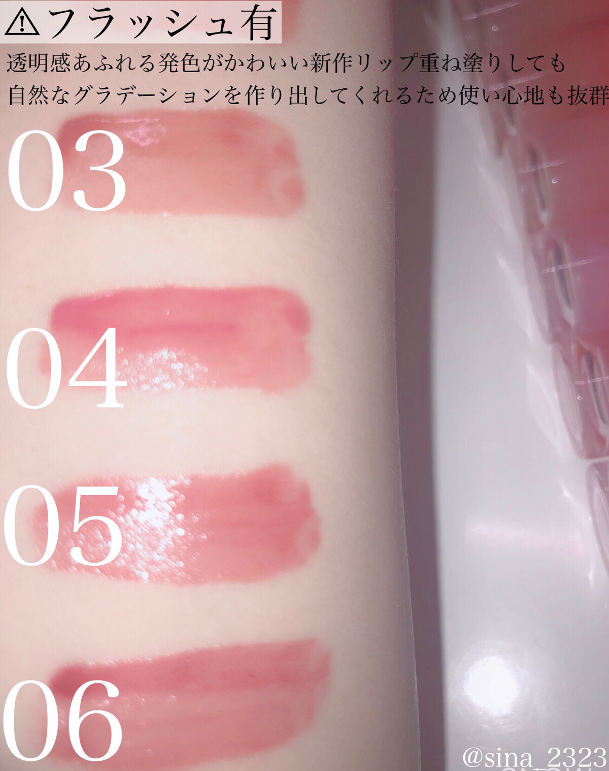 - <01 BEST BEIGE MENU(推し杏子ベージュ)> 水、ジフェニルジメチコン、リンゴ酸ジイソステアリル、ビスジグリセリルボリアシルアジペート-2、水添ポリイソブテン、ダイマー ジリノール酸ダイマージリノレイルビス(ベヘニル/イソステアリル/フィトステリル)、ジグリセリン、セチルPEG/PPG-10/1ジメチコン、DPG、水添ポリ (C6-14 オレフィン)、ポリソルベート60、イソステアリン酸ソルビタン、ダイマージリノール酸ジイソステアリン酸ポリ グリセリル-3、ペンチレングリコール、(アクリル酸ヒドロキシエチル/アクリロイルジメチルタウリンNa)コポリマー、トリ(カプリル酸/ カプリン酸)グリセリル、スクワラン、セテアレス-20、(エチレン/プロピレン)コポリマー、フェノキシエタノール、グリセリン、ポリグリ セリン-3、香料、エチルヘキシルグリセリン、ハマメリス葉エキス、オニユリエキス、BG、酸化チタン、黄5、赤227、赤104(1)、青1 <02 CORAL INFLUENCER(イエベ必須コーラル)> 水、ジフェニルジメチコン、リンゴ酸ジイソステアリル、ビスジグリセリルボリアシルアジペート-2、水添ポリイソブテン、ダイマー ジリノール酸ダイマージリノレイルビス(ベヘニル/イソステアリル/フィトステリル)、ジグリセリン、セチルPEG/PPG-10/1ジメチコン、DPG、水添ポリ (C6-14 オレフィン)、ポリソルベート60、イソステアリン酸ソルビタン、ダイマージリノール酸ジイソステアリン酸ポリ グリセリル-3、ペンチレングリコール、(アクリル酸ヒドロキシエチル/アクリロイルジメチルタウリンNa)コポリマー、トリ(カプリル酸/ カプリン酸)グリセリル、スクワラン、セテアレス-20、(エチレン/プロピレン)コポリマー、フェノキシエタノール、グリセリン、ポリグリ セリン-3、香料、エチルヘキシルグリセリン、ハマメリス葉エキス、オニユリエキス、BG、酸化チタン、黄5、赤227、赤104(1)、青1 <03 ROSE IN MIND(いいねローズ)> 水、ジフェニルジメチコン、リンゴ酸ジイソステアリル、ビスジグリセリルポリアシルアジペート-2、水添ポリイソブテン、ダイマージリノール酸ダイマージリノレイルビス(ベヘニル/イソステアリル/フィトステリル)、ジグリセリン、DPG、セチルPEG/PPG-10/1ジメチコン、水添ポリデセン、ポリソルベート60、イソステアリン酸ソルビタン、ダイマージリノール酸ジイソステアリン酸ポリグリセリル-3、ペンチレングリコール、(アクリル酸ヒドロキシエチル/アクリロイルジメチルタウリンNa)コポリマー、トリ(カプリル酸/カプリン酸)グリセリル、スクワラン、セテアレス-20、(エチレン/プロピレン)コポリマー、フェノキシエタノール、グリセリン、香料、エチルヘキシルグリセリン、ハマメリス葉エキス、オニユリエキス、BG、テトラ(ジ-t-ブチルヒドロキシヒドロケイヒ酸)ペンタエリスリチル、酸化チタン、黄5、赤104(1)、赤227、青1 <04 PINK YOUTH(ベイビー天使)> 水、ジフェニルジメチコン、リンゴ酸ジイソステアリル、ビスジグリセリルボリアシルアジペート-2、水添ポリイソブテン、ダイマー ジリノール酸ダイマージリノレイルビス(ベヘニル/イソステアリル/フィトステリル)、ジグリセリン、セチルPEG/PPG-10/1ジメチコン、DPG、水添ポリ (C6-14オレフィン)、ポリソルベート60、イソステアリン酸ソルビタン、ダイマージリノール酸ジイソステアリン酸ポリ グリセリル-3、ペンチレングリコール、(アクリル酸ヒドロキシエチル/アクリロイルジメチルタウリンNa)コポリマー、トリ(カプリル酸/ カプリン酸)グリセリル、スクワラン、セテアレス-20、(エチレン/プロピレン)コポリマー、フェノキシエタノール、ポリグリセリン-3、香料、エチルヘキシルグリセリン、グリセリン、水酸化Al、ポリアクリル酸アンモニウム、BG、ハマメリス葉エキス、オニユリエキス、酸化チタン、赤227、黄4、赤104 (1) 黄5、青1 <05 CHERRY SO WHAT(どうしたのチェリー)> 水、ジフェニルジメチコン、リンゴ酸ジイソステアリル、ビスジグリセリルポリアシルアジペート-2、水添ポリイソブテン、ダイマージリノール酸ダイマージリノレイルビス(ベヘニル/イソステアリル/フィトステリル)、ジグリセリン、セチルPEG/PPG-10/1ジメチコン、DPG、水添ポリ(C6-14オレフィン)、ポリソルベート60、イソステアリン酸ソルビタン、ダイマージリノール酸ジイソステアリン酸ポリグリセリル-3、ペンチレングリコール、(アクリル酸ヒドロキシエチル/アクリロイルジメチルタウリンNa)コポリマー、トリ(カプリル酸/カプリン酸)グリセリル、スクワラン、セテアレス-20、(エチレン/プロピレン)コポリマー、フェノキシエタノール、ポリグリセリン-3、香料、エチルヘキシルグリセリン、グリセリン、ハマメリス葉エキス、オニユリエキス、BG、赤227、黄4、赤104(1)、黄5、青1 <06 PLUM UPDATE(プロフ写プラム)> 水、ジフェニルジメチコン、リンゴ酸ジイソステアリル、ビスジグリセリルポリアシルアジペート-2、水添ポリイソブテン、ダイマー ジリノール酸ダイマージリノレイルビス(ベヘニル/イソステアリル/フィトステリル)、