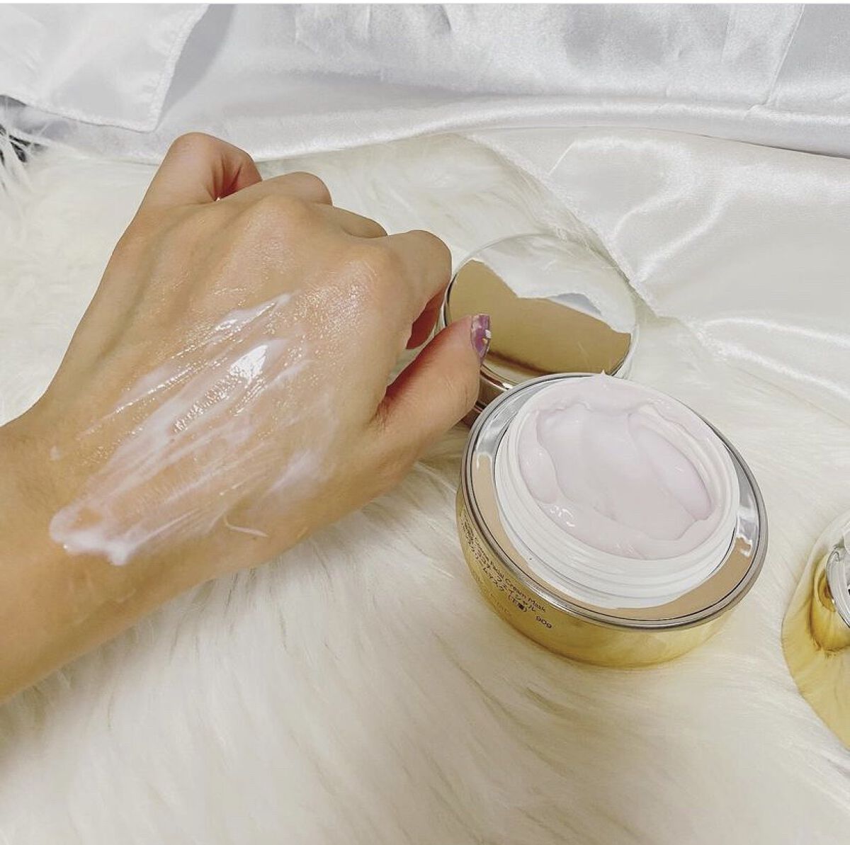 蓋を開けると2層式になっていて上側の白いクリームはなめらかなテクスチャーのクリームで伸びが良くて肌を柔らかくしてマスクを塗る準備をしてくれる 下側のマスクはかためのしっかりしたテクスチャーしっかりしてるけど、塗りにくさはなくてクリームの上からそのまま重ねづけして使います!このマスクは有効成分を角質層までとどけてくれる どちらも高級感のあるとっても良い香り ザトサクラ花エキス、アロエベラ葉エキス、フラーレンなどエイジングケア成分がバランスよく配合 マスク後はびっくりするくらいお肌が柔らかくなるふわふわのお肌になってあとのスキンケアの馴染みもいい! マスクした翌日の化粧ノリも良かったから大満足 化粧水前に10?15分のひと手間で乾燥、くすみ、ハリ不足にアプローチできます 敏感肌にも優しい4つのフリー処方で安心して使えるレスキューアイテム 高級感があるパケだから、プレゼントにも喜ばれそうです