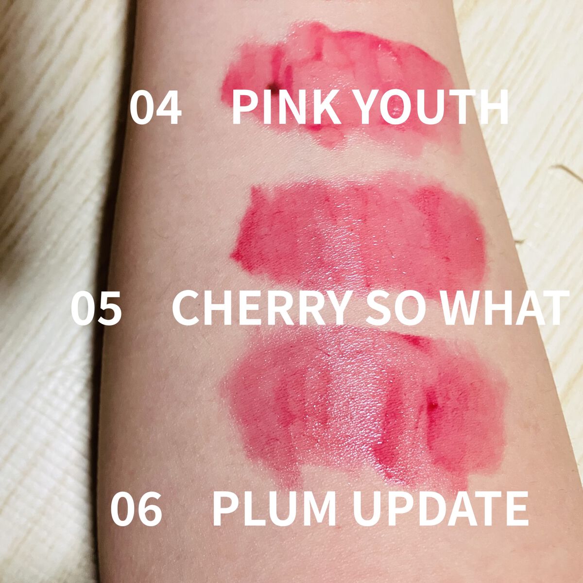 すごく馴染むベージュナチュラルにかわいくなれる❣️ コーラルピンクイエベさん絶対似合うピンクです💕 これが1番お気に入り!すごくかわいい色💗 絶妙な赤ローズなのにイエベさんにもしっくりくる the 青みピンクって感じブルベさんは絶対似合います💕 チェリー🍒な感じの色かわいい😍 かわいい雰囲気の赤です この秋一押しプラムカラー💜 深みのあるピンク小慣れ感が出ます めっちゃ色持ち良いです マスクしてても全然ついてないし、食事しても全く落ちなかった! 1日塗り直さなくて良いくらい持ちがいい ツヤーとした感じ、 しばらく経つとムチッとした感じになります 保湿もしっかりしてくれます アピューのティントに似てるかな ツヤっとするんだけどムチッともする感じ 色持ちもいいしもはや満点💯
