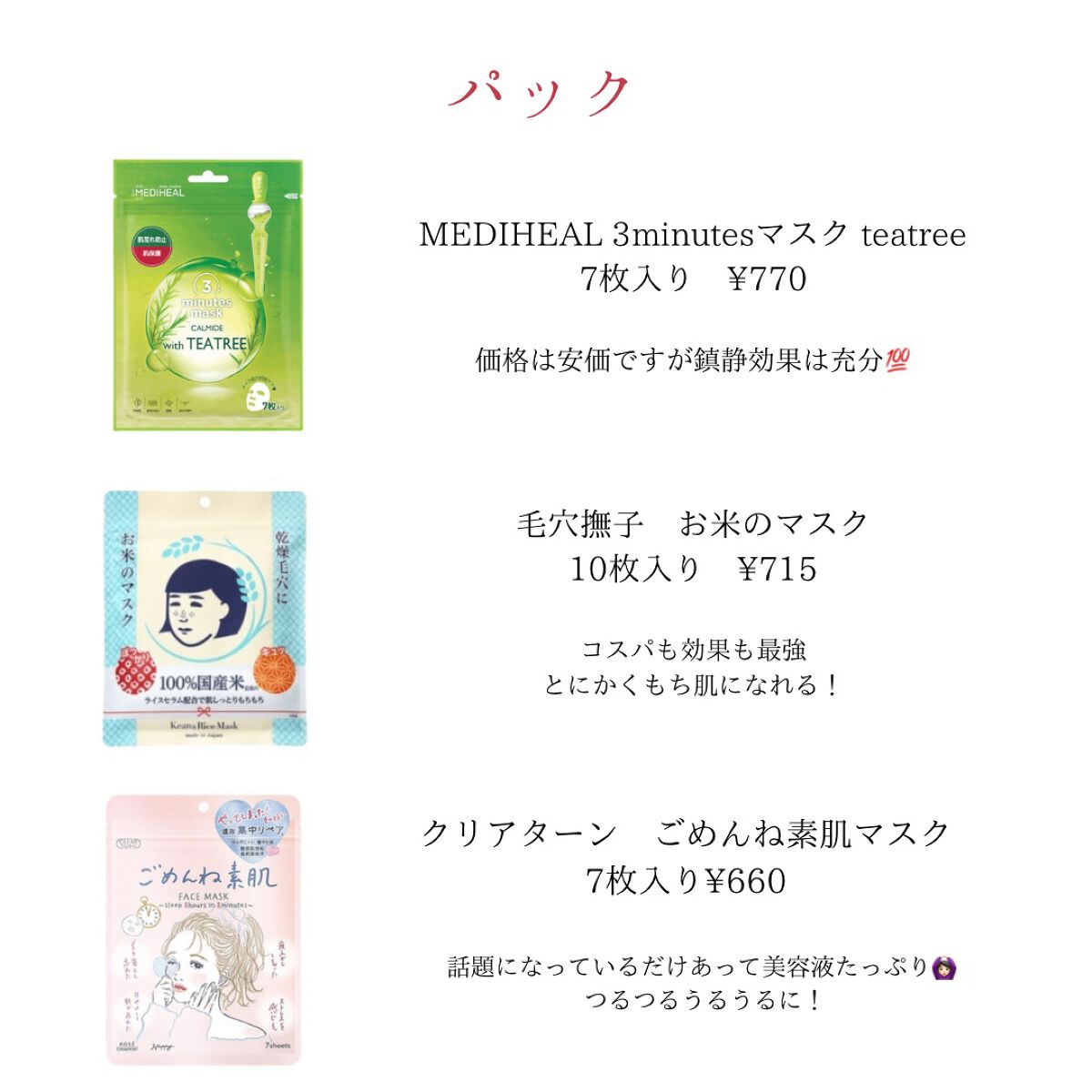 おすすめアイテム毛穴撫子×シートマスク・パック