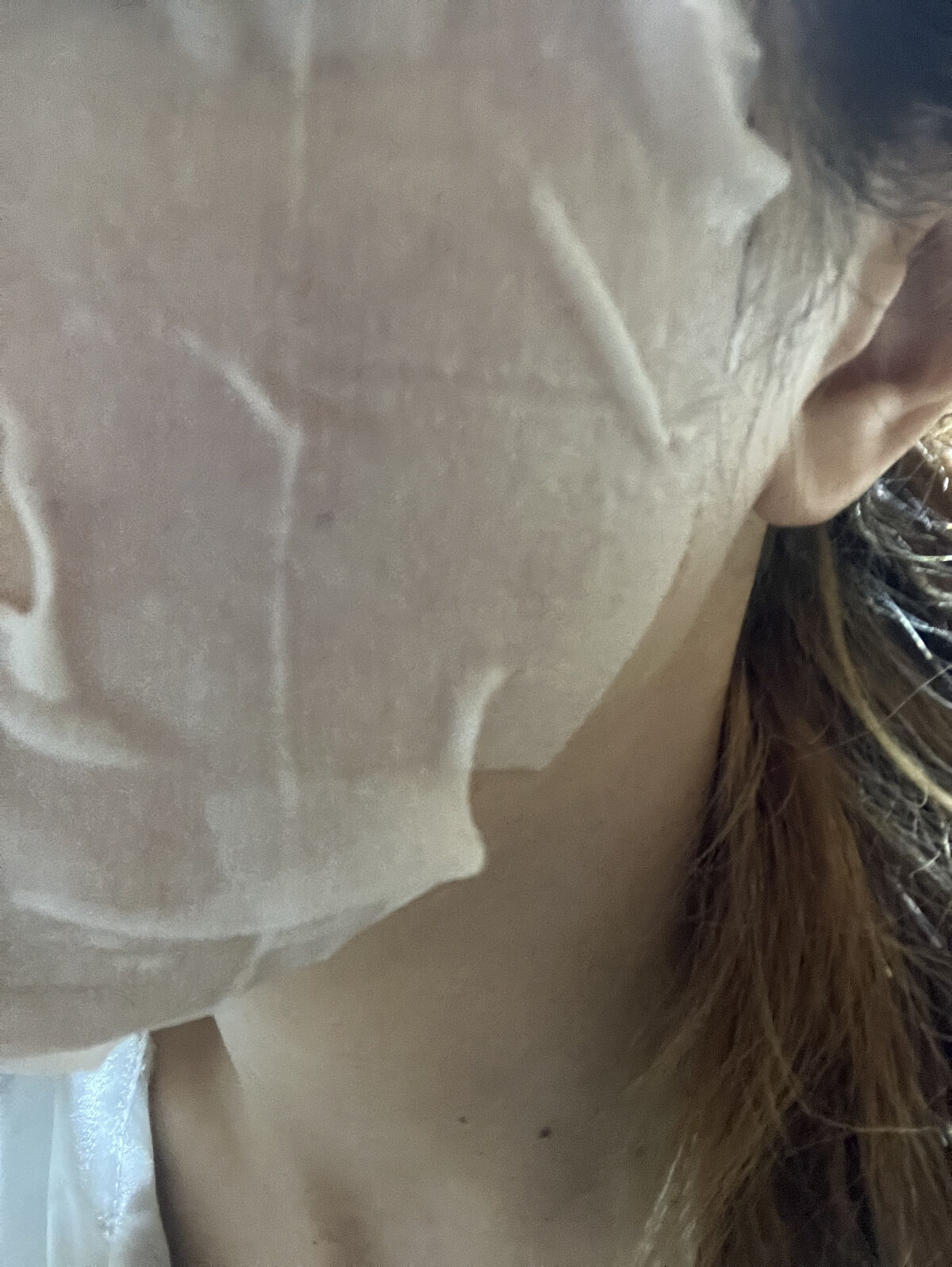 保湿力は結構良かったです これを使った後は、化粧ノリがいい🩷 値段は高くないので、日常使いする人に良いです また、形が四角で取りやすく、広げやすい✨ どのフェイスマスクにも言えることですが、大きすぎて顔の端のほうはシートがシワシワになるし、顎まで全部保湿してしまう😂