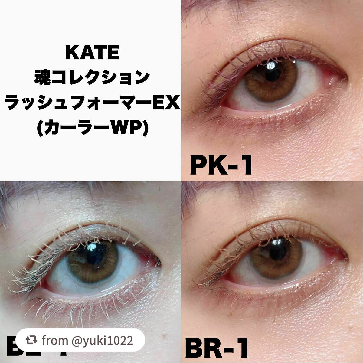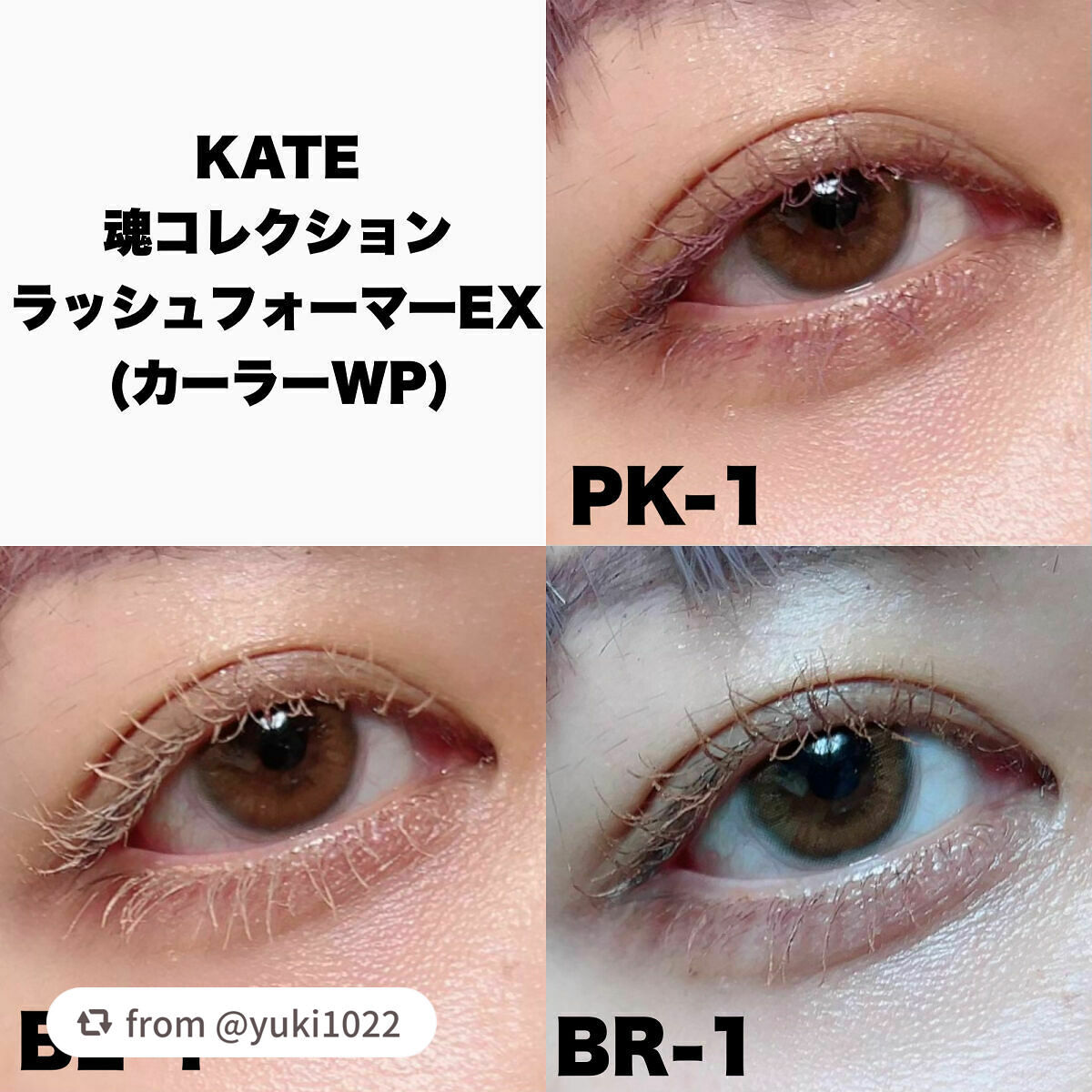- 【魂コレクションについて】 コレクションテーマ:自分追求メイク 「魂」=自分らしさ。一番深いところにある、自分の原点。 個々人の生まれ持った骨格やパーツの美しさを引き立てながら、「もっとこうなりたい」という意志(内面個性)をも叶える、 そんな誰の真似でもない本当の「自分らしい美しさ」を追求できるメイクコレクション。 過去・現在のKATEの強みを進化させたコレクションアイテム。 ・伝統を現在に昇華させる着物ブランド「Rumi Rock」の芝崎るみさんとコラボレーションした、内から湧き出る魂を感じさせる特別なデザイン └全6商品 / 15 SKU 【ラッシュフォーマーEX(カラーWP)】 全3色(PK-1 モーヴピンク・BE-1 ベージュ・BR-1 キャラメルブラウン) まつ毛の主張を抑えて、ブラウンメイクの魅力を引き出すニュアンスカラーの色影ラッシュフォーマー ※こすれや湿気に強いウォータープルーフプロテクト処方採用 ※汗・水・湿気に強いウォータープルーフ ※繊維入り ※ダマにならずセパレートするカーブアップブラシ