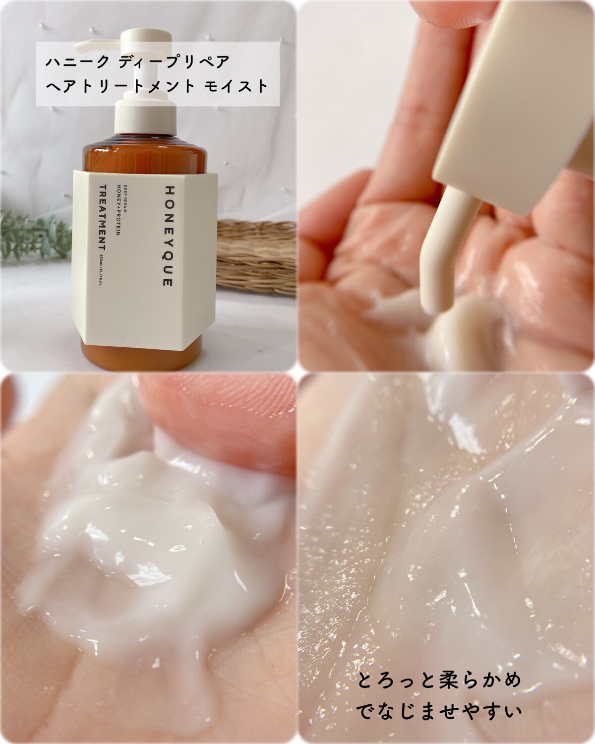 ふわっと蜜髪仕上がり🍯 髪の三大悩みうねり·広がり·パサつきをケア アクアブロッサムハニーの香り はちみつミルクのような甘過ぎない落ち着く甘さに感じました。 毛先までしっとりまとまる蜜髪へ