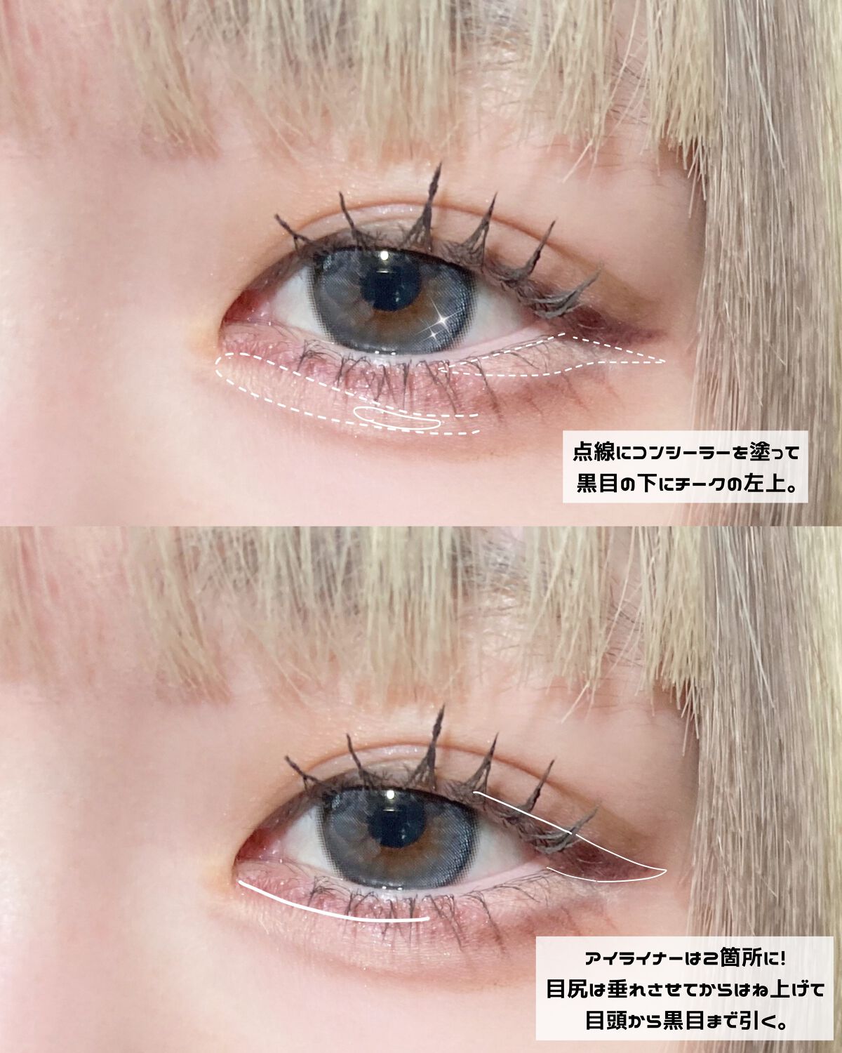 まつ毛の束感の作り方⤵︎⤵︎⤵︎ クマの隠し方と眉毛については後日詳しく紹介します.ᐟ .ᐟ 特にクマの隠し方はめちゃめちゃおすすめの方法なのでビフォーアフターで紹介します!