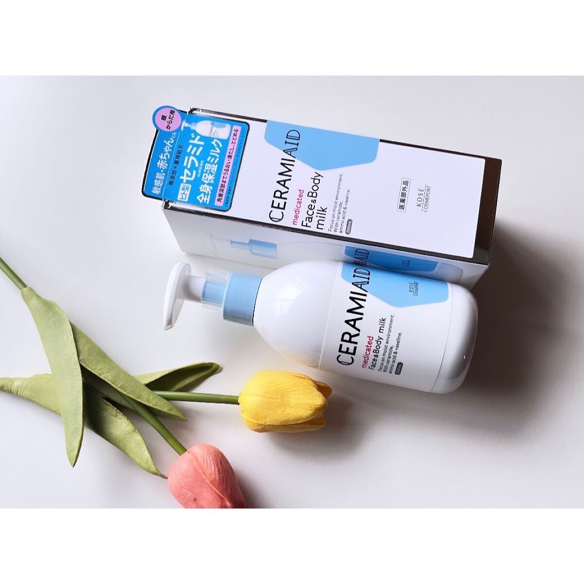 敏感肌の方や赤ちゃんにも使える薬用スキンミルク🤍 3つのアプローチで肌あれを防ぎ乾かない肌へ✨ 有効成分「グリチルレチン酸ステリアル」配合 うるおいで満たす「ヒト型セラミド*・アミノ酸*¹GL(保湿)」配合 ミルクタイプなので伸びが良くてすごく塗りやすいです🤍✨ 塗ったあとのベタつきはなく、子供たちも気に入って使ってます🙌