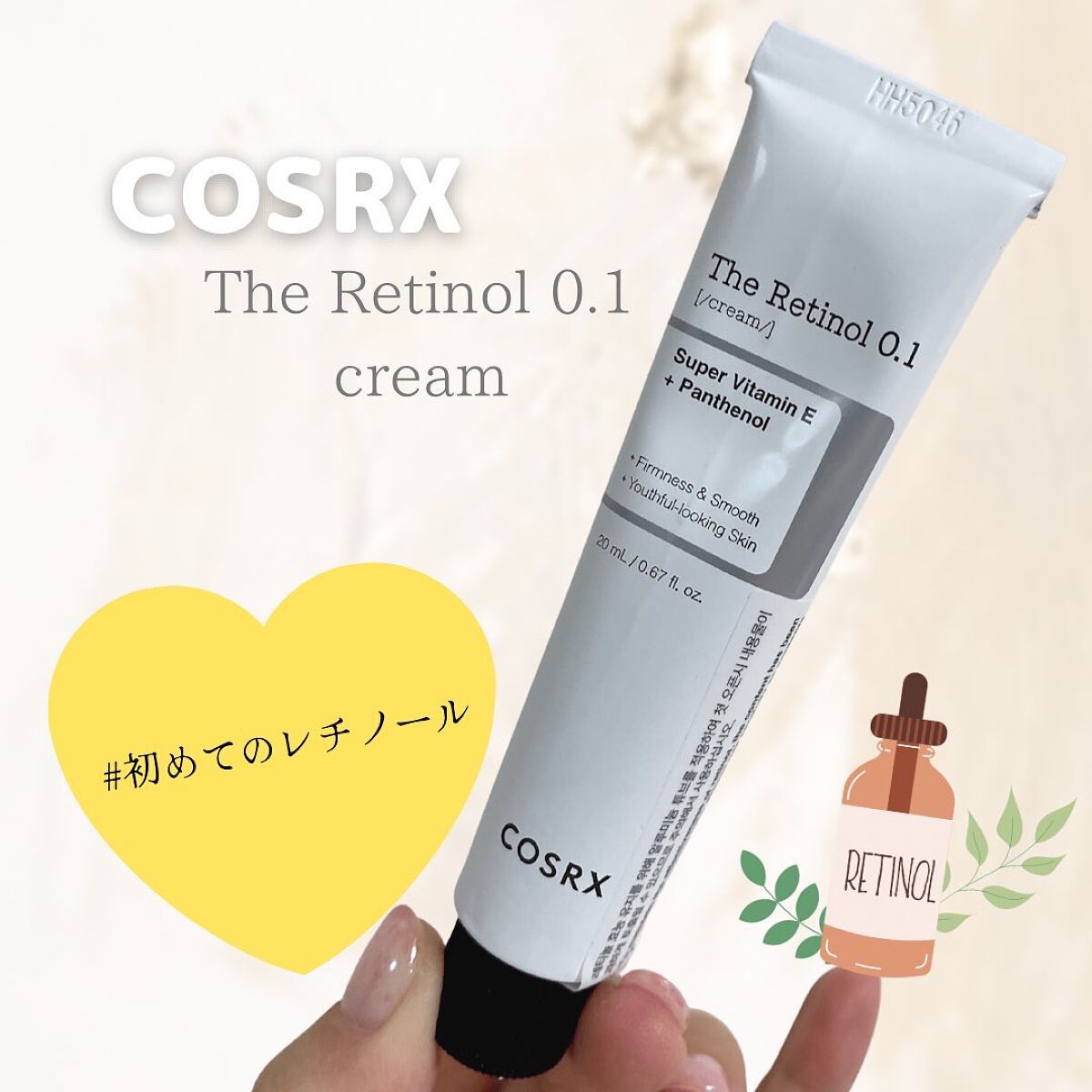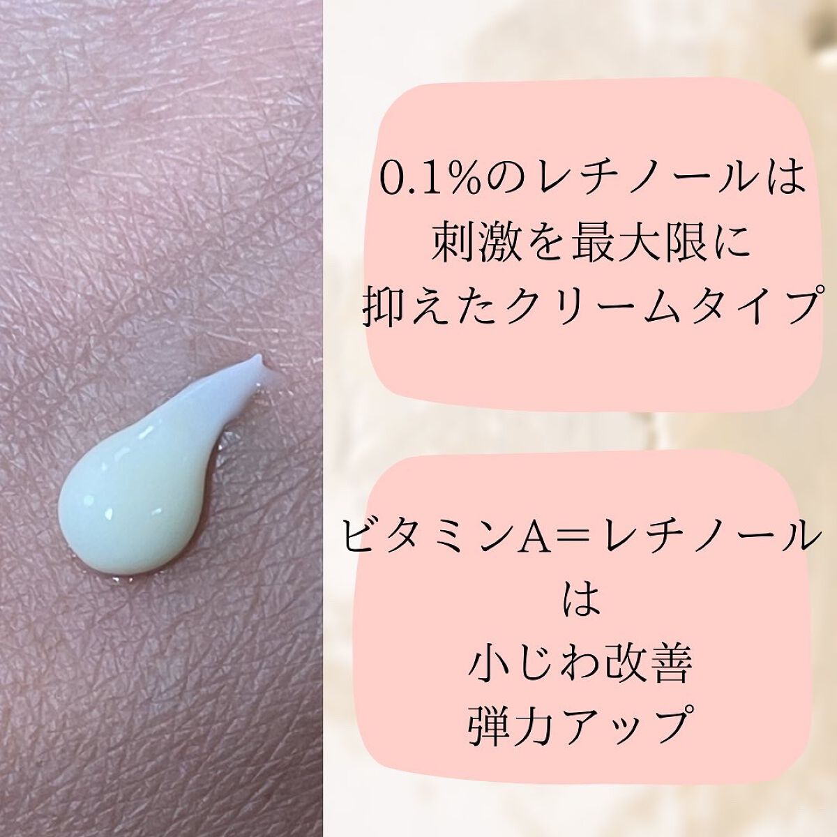 - #初心者向けのレチノール #初めてのレチノール ◎純粋レチノール0.1%安定化処方(保湿成分として) ◎お家で本格的な皮膚科学に基づいた保湿ケアが可能 ◎乾燥による毛穴目立ち/弾力/ハリにこだわりの保湿効果 ・「ノンコメドジェニックテスト(*1)」済み ・「敏感肌対象一次刺激テスト(*1)」済み ・「皮膚一次刺激テスト(*1)」済み 【こんな方におすすめ】 ・乾燥により目立った毛穴がお悩みの方 ・早めにエイジングケア(*2)を始めたい方 ・特に20代におすすめ ・時間が経つとメイクが浮き出る方 【注意事項】 ・アルミチューブの特性上初回オープン時に飛び出す可能性がございますのでご注意ください。 ・品質維持のため冷蔵保存おすすめ *1 )全ての方にコメド(ニキビのもと)や刺激が発生しないということではありません。 *2 )年齢を重ねた肌にうるおいを与えること