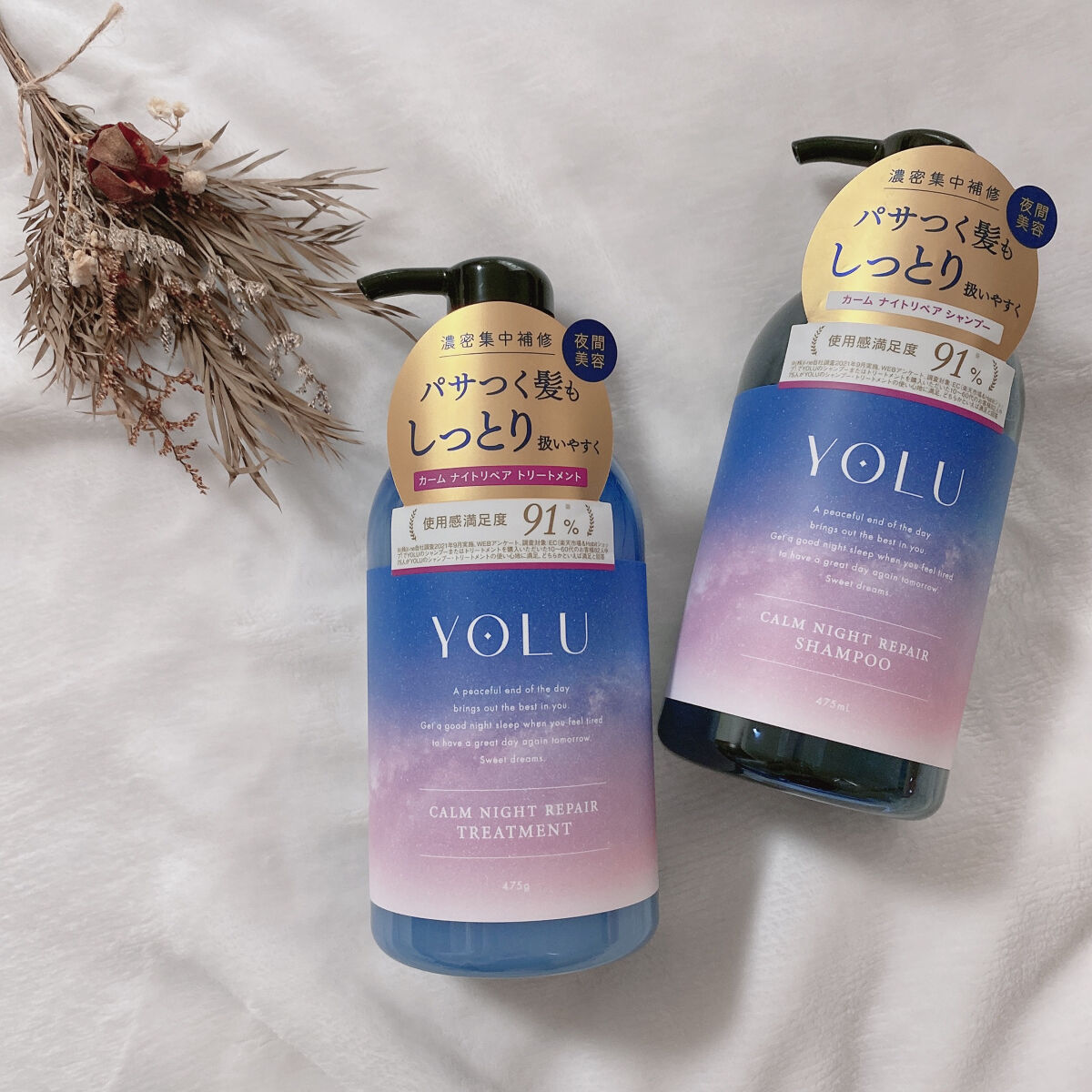 YOLUカームナイトリペアシャンプー/トリートメント@yolu_official様からいただきお試ししましたオシャレなパッケージダメージリスクは日中だけでなく、夜にも髪と地肌の濃密ナイトケアで、しっとりうるツヤ髪へナイトキャップ処方で睡眠中の...