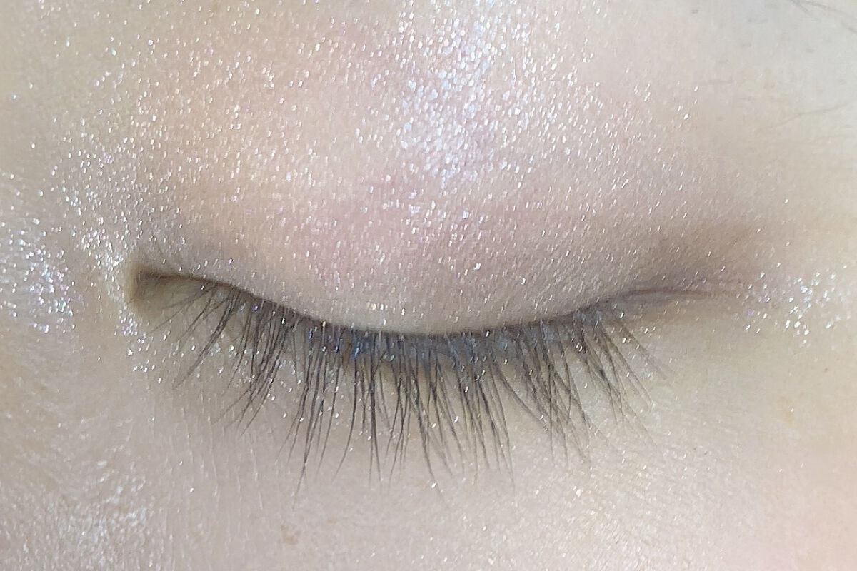 アイベースを使わなくてもきちんと密着してくれて崩れたり、二重線に溜まることもなく使えます! 塗り心地はスルスルぬれて、ベタつきが少ない印象でした。 高発色でラメも少し入っているので繊細に煌めきます。
