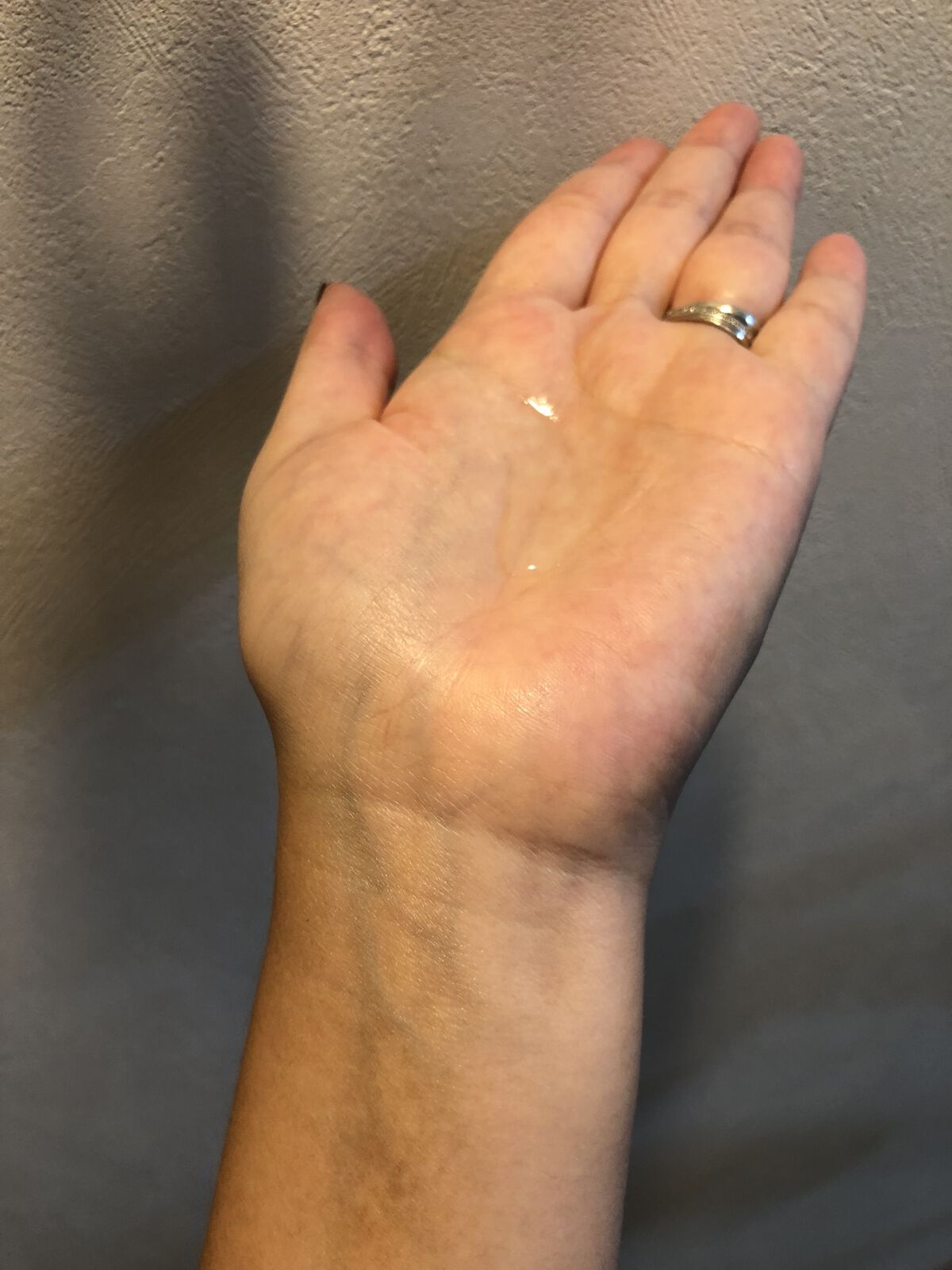 ややとろみのあるテクスチャでつけた瞬間 すぐにしっとり保湿されたお肌になれます☺︎ 自分の指で触ってみても肌がしっとりツルツルしていて、次の日の朝もしっかり持続していました♡