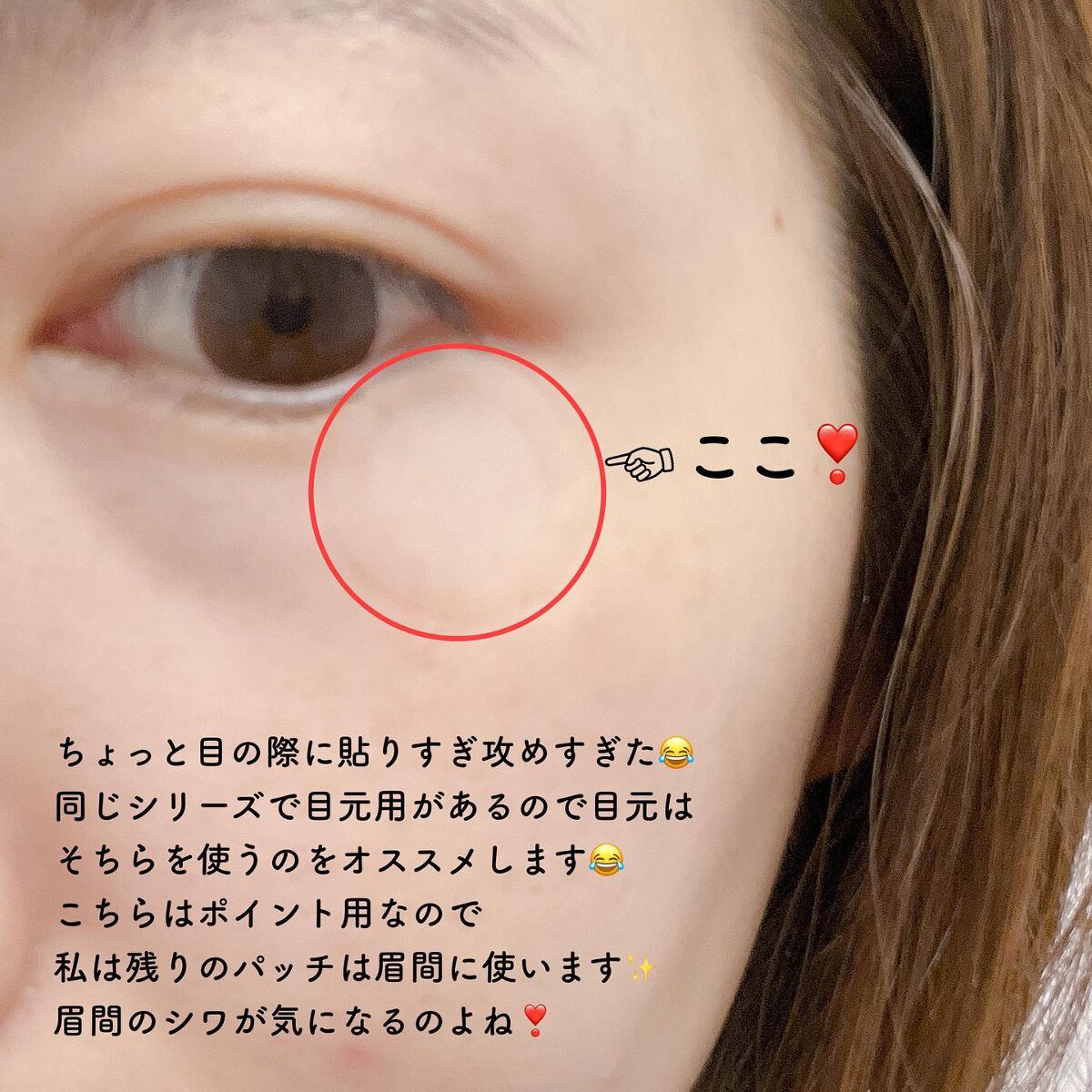 チクチクしたパッチを化粧水のあとに、付けて眠るだけ◎ 密着感が良いのでペラペラ剥がれることもなく、翌朝までしっかり有効成分が肌に吸収されてる感じがします。 私は、目尻と、ほうれい線部分を集中ケア。ちょっとお高いのでスペシャルケアの日に愛用💓