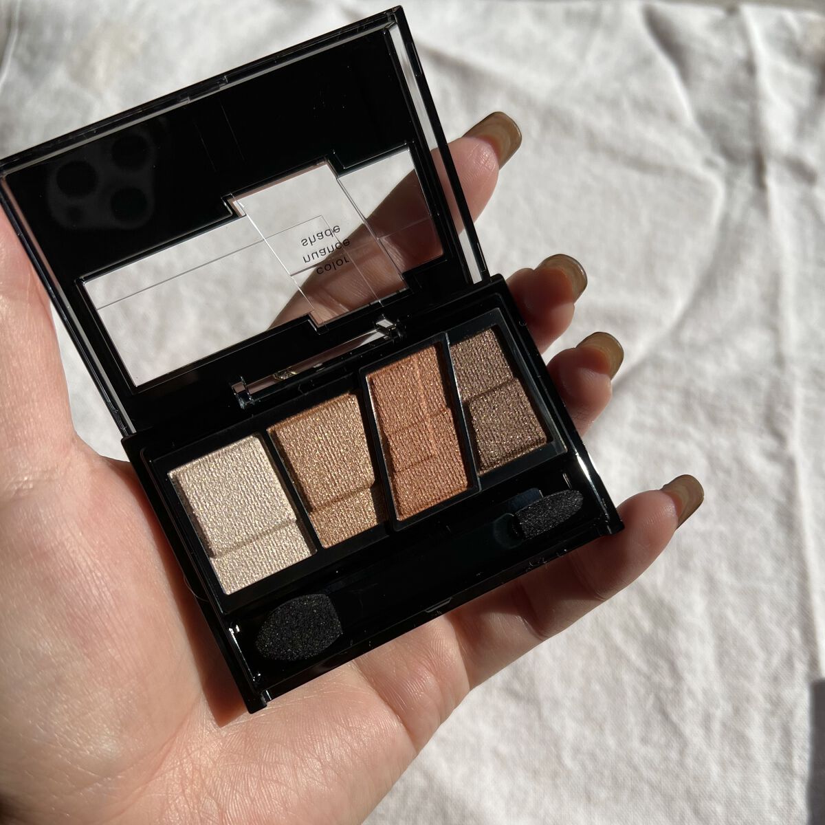 - カラーニュアンスシェードを目尻に入れるだけで目幅を大きく見せ※、抜け感のある明るい大きな目元に仕上るブラウンアイシャドウ。 ブラウン×カラーニュアンスの4色セット。※メイクアップ効果