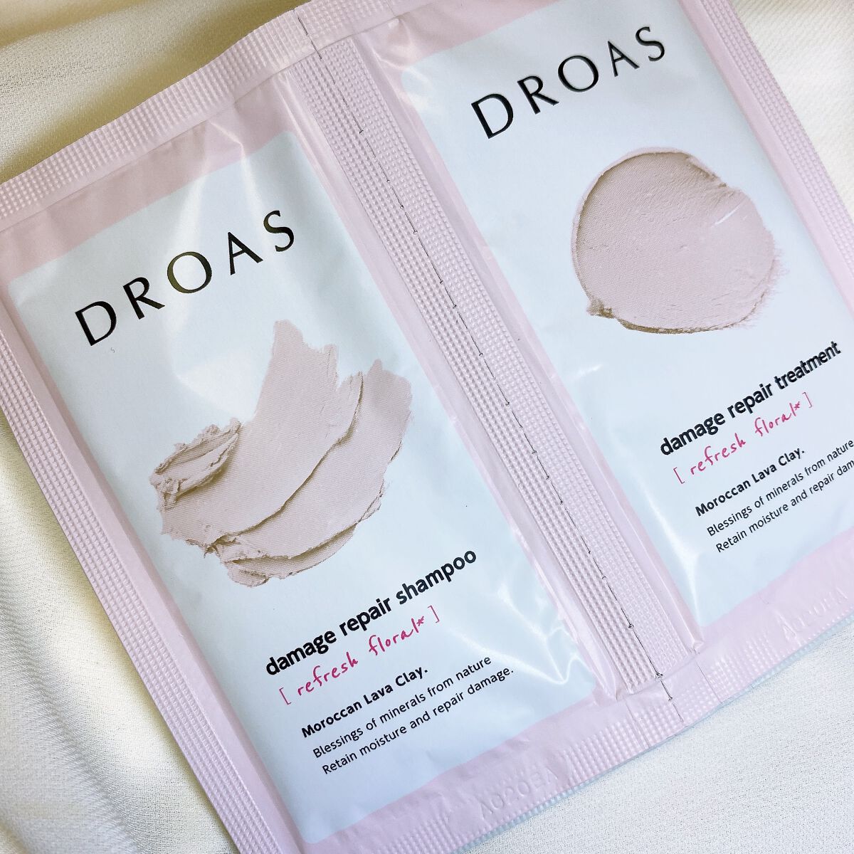\サシェ使い切り正直レポ🧴🫧/⸻⸻⸻⸻🛁DROASダメージリペアシャンプー/トリートメント2連サシェ各10mL/10g¥110税込リフレッシュフローラルの香り⸻⸻⸻⸻先日の出産入院のときに「サシェなら軽くて持っていきやすい!」と思って持参しま...