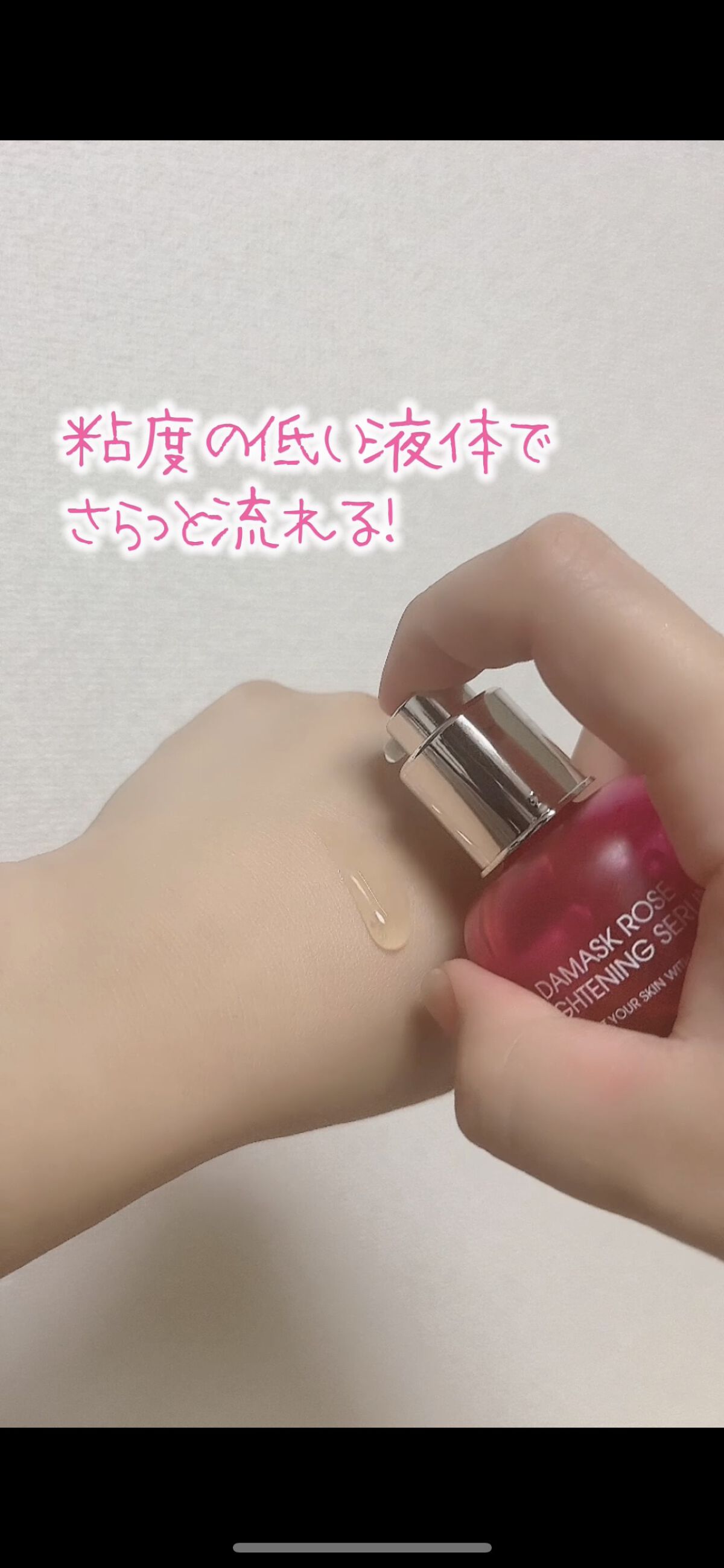 ダマスクローズ花水87%にアルブチン3%と、とにかく美白に特化しています ビタミンCの美容液は、敏感肌の私には刺激が強くて毎日使えませんが、これは全く刺激を感じませんし肌が荒れないので、毎日使えます‼️ 本当にコレがオススメ第1のポイント❣️❣️ 夏くらいに発売されたプンバキさんとリアルバリアがコラボして作ったクリームと合わせて使えば、美白効果も絶大になるとのことなので、私も美容液とクリームを合わせて使ってます‼️👍🏻‼️ シミや肌の色ムラが改善されると良いなと思いながら使い続けようと思っています😊