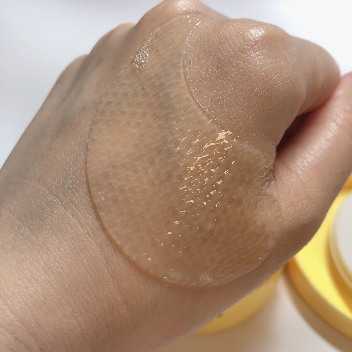 - グリーンタンジェリンビタCのセラムの美容成分をゲルで固めたハイドロゲルシート!エンボ模様のシートが肌から浮かずみ密着されて屈曲のある部位につけての落ちません!