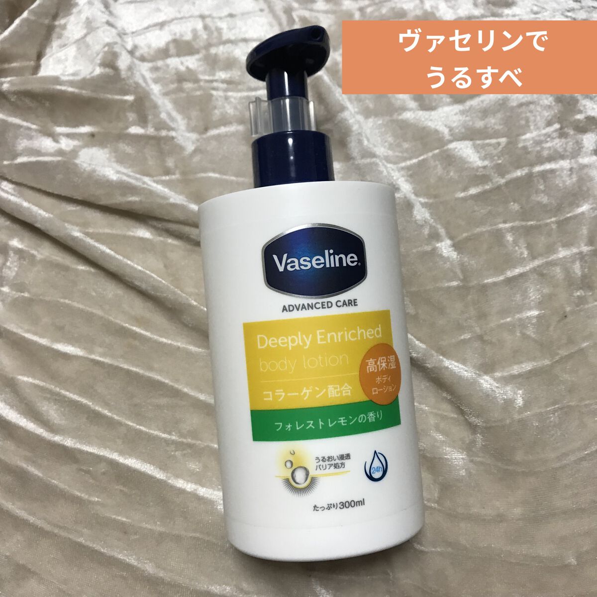 保湿といえばヴァセリン! コラーゲン・3種の天然保湿成分で しっとり柔らかい肌になります✨ フォレストレモンのさわやかな香りで お風呂上がりもリラックスできます🍋 ボディミルクですが香りが良いので ハンドクリームとしても使ってます💖 ラベンダーもあるみたいなので使ってみたい! 私はベタつき感が少し苦手なタイプですが こちらはベタつかずさらっとしています! 保湿もしっかりできるので乾燥しやすい これからの季節にいいですね✨