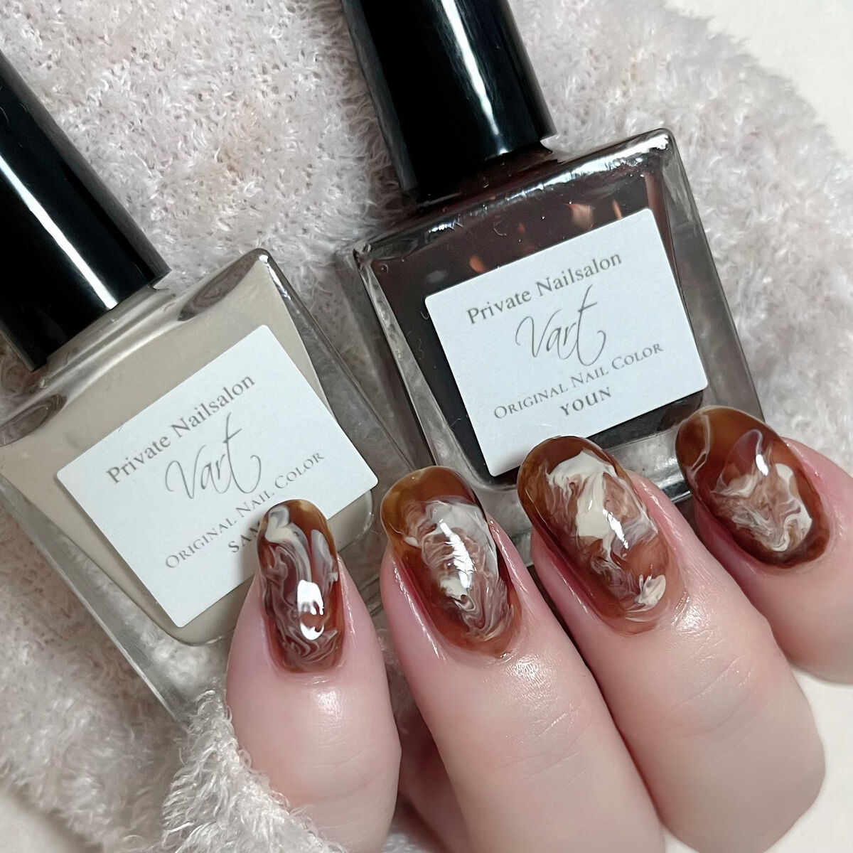 ルナソルのEX50はラベンダーベースに青パールが強く光る、氷のようなひんやりカラーです。 ベースにスキューズミーのシアーラベンダーを塗り、EX50を2度塗りしてもイエローラインが分かる透け感です。 Vartはecnueとしてリニューアルしましたね! GINKAも再登場してほしいカラーの1つです🩵 煌めく冬ネイル