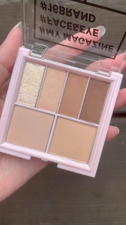小さなマガジンのパケを開くと、アイシャドウ&チークとして使える可愛いパレットが入ってる☺️ ふんわり甘いコーラルピンクなメイクができたよ🐰 白みのある淡くて優しい仕上がりになるよ♡ 3色スウォッチしたので色味の参考にしてください🥰