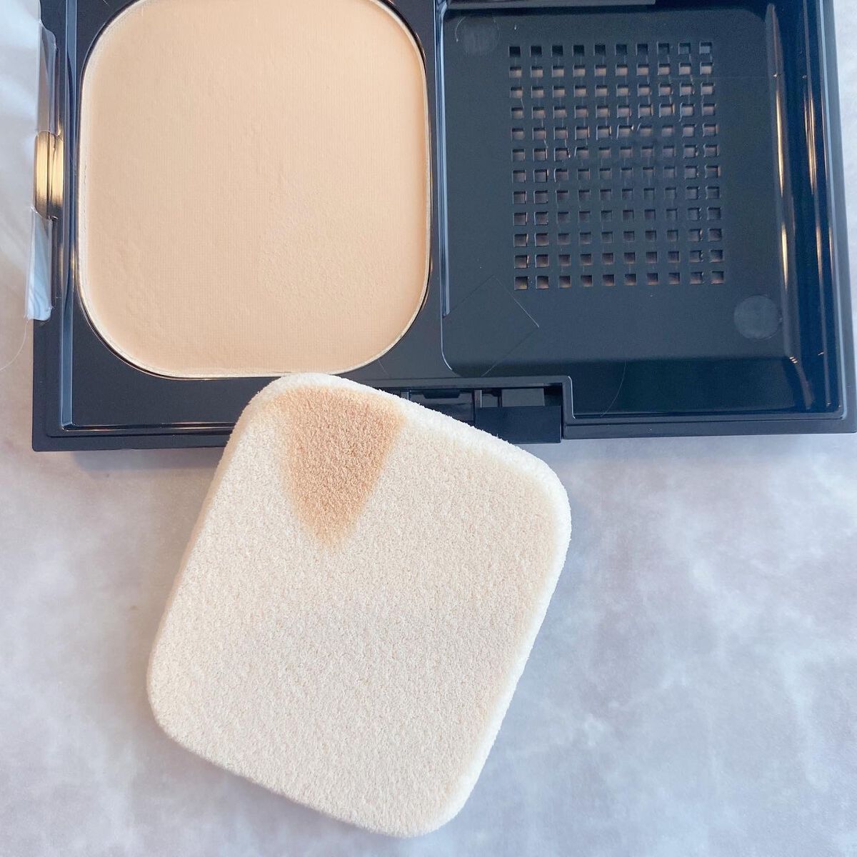 オイル高配合だからピタッと密着して毛穴をカバーし、粉感もない美しい仕上がり◎ 粉っぽく無い質感も好き!オイルの配合量が高いから粉浮きが目立たない◎ ナチュラルに見えるのに、隠したいポイントはきちんとカバーできているのが凄い。